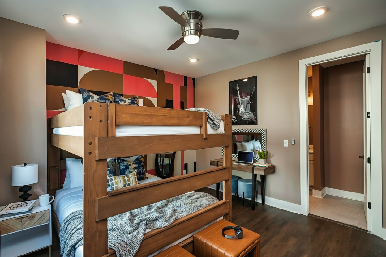 Indulge in relaxation with four full, ensuite and elegantly designed bathrooms, featuring modern amenities and touches of rustic charm inspired by Nashville's bluegrass heritage.
