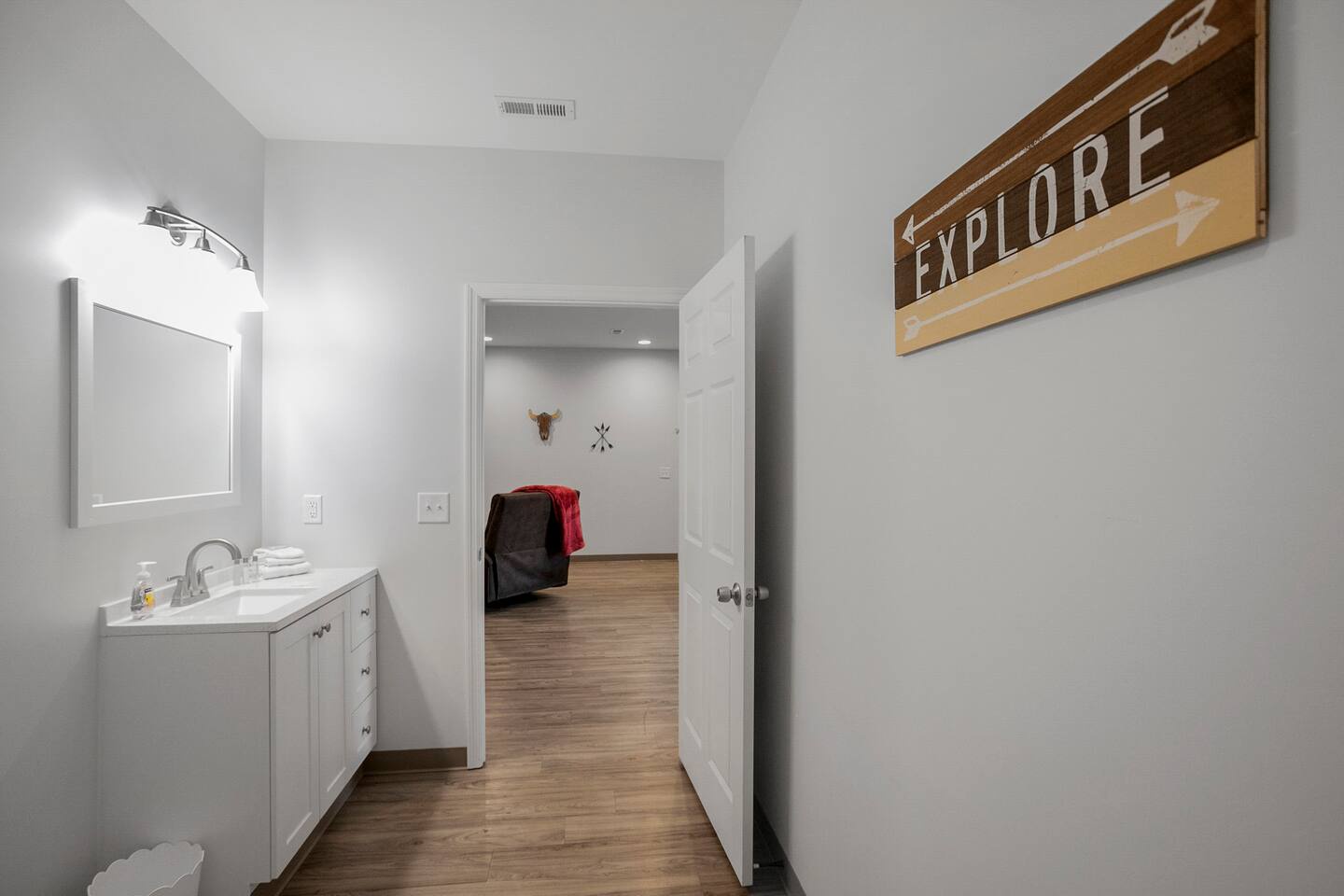 Two large full bathrooms make getting ready easy for your group.