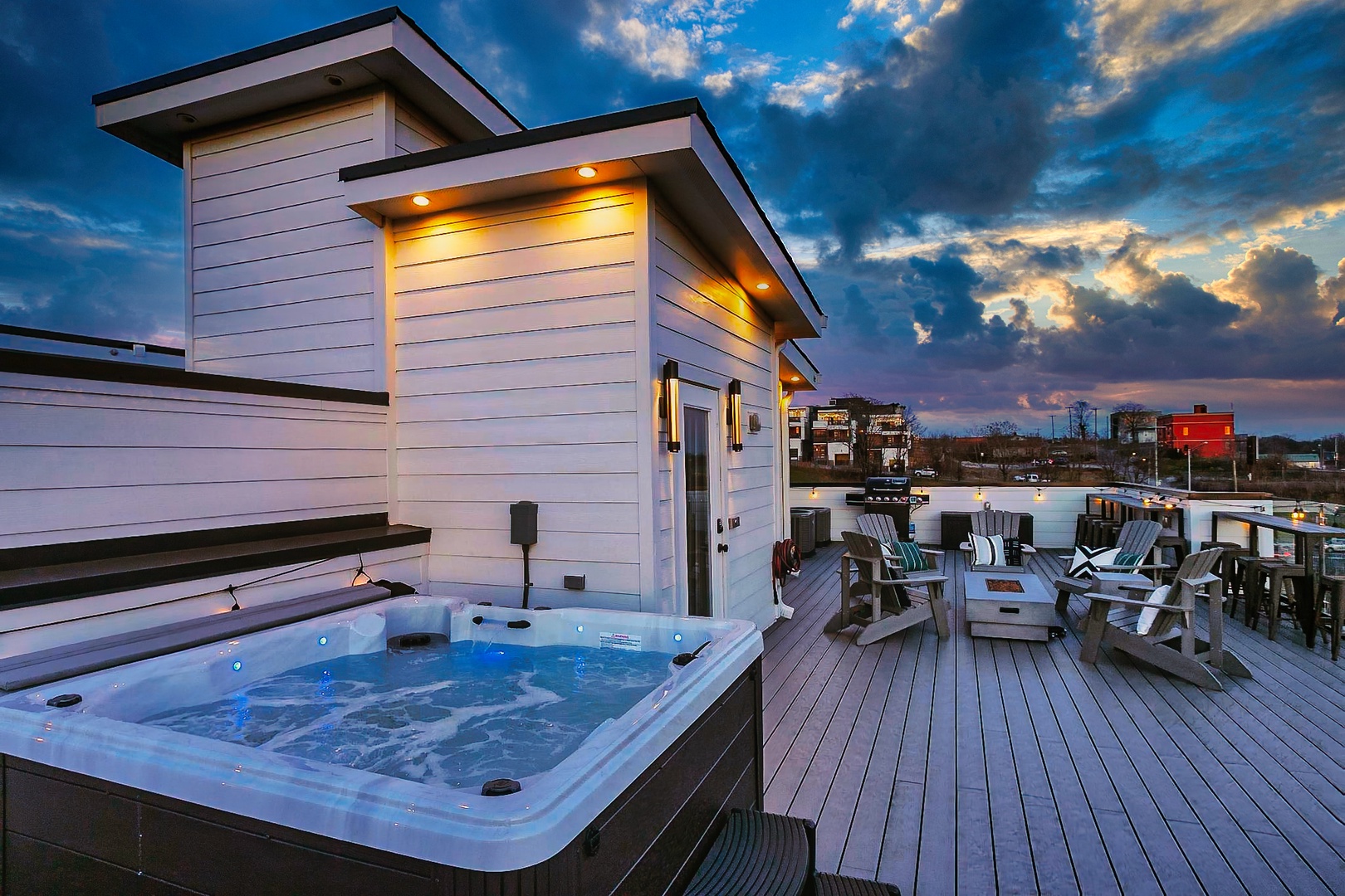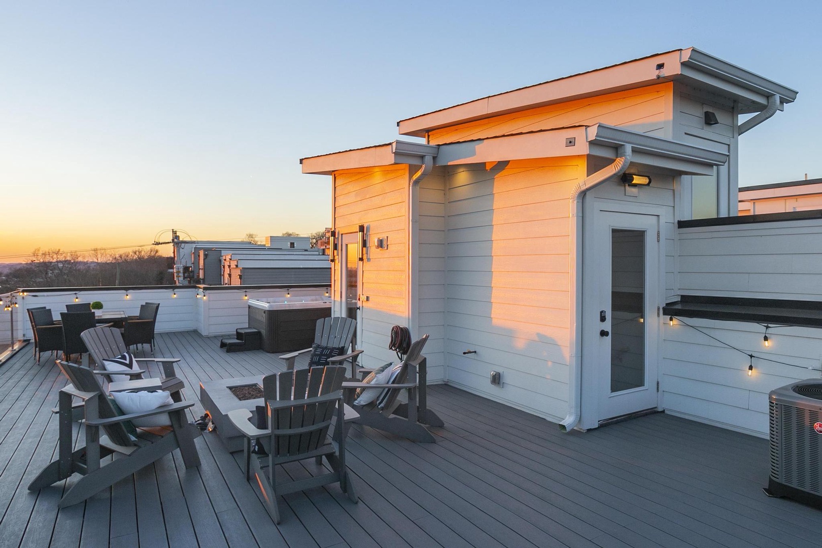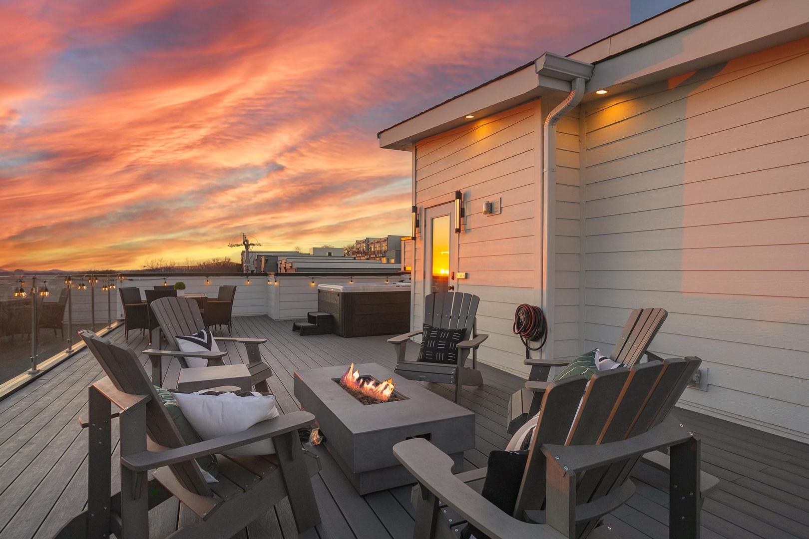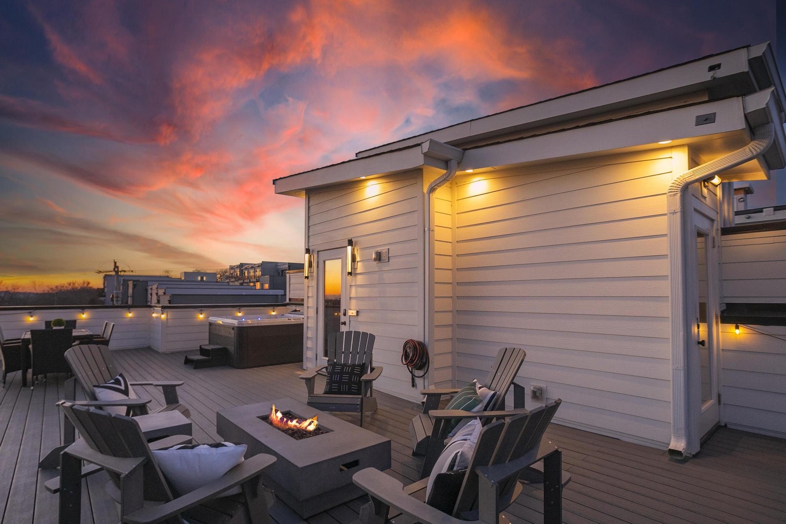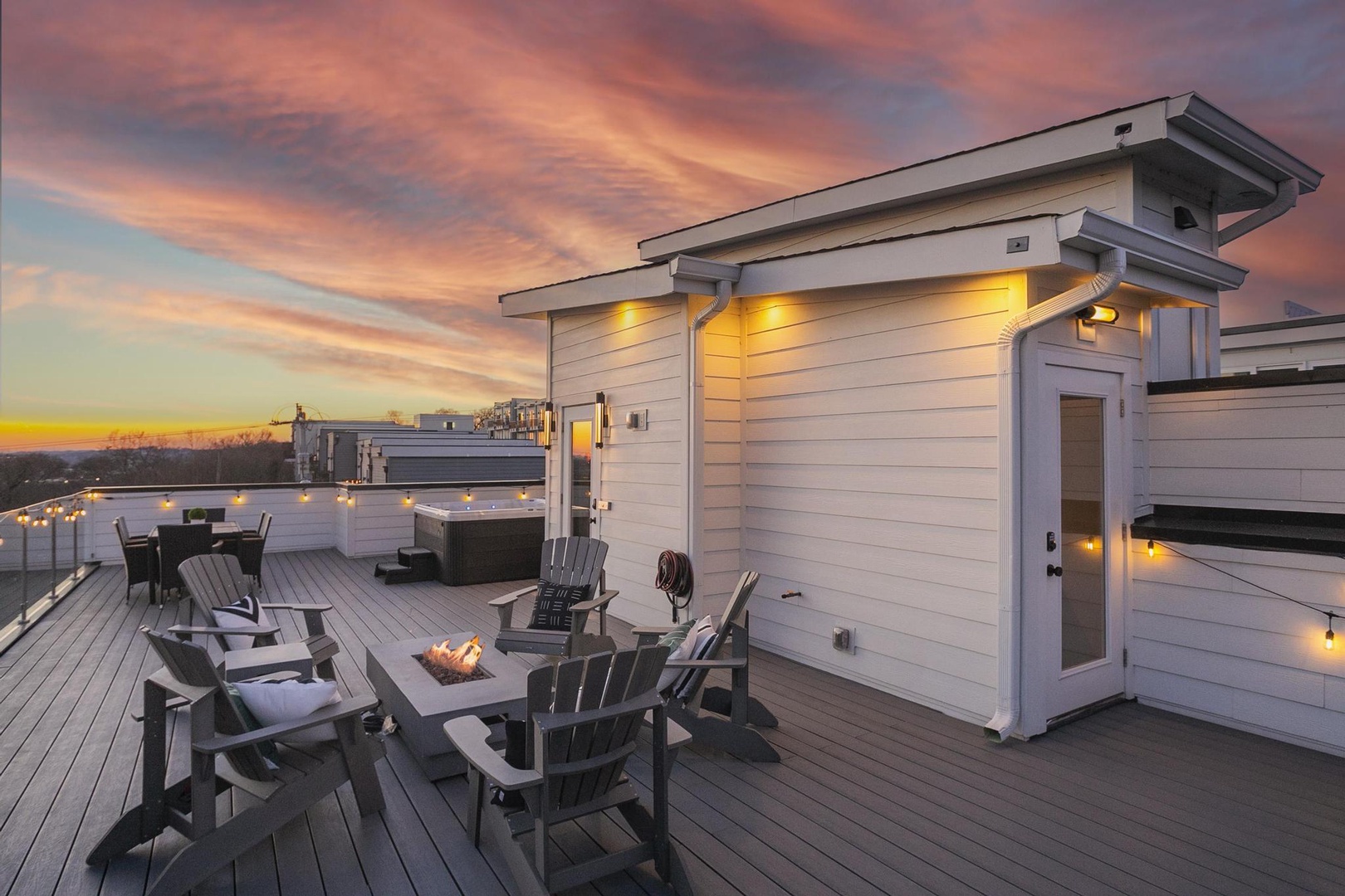 • Massive rooftop deck with city views, hot tub, fire pit – the perfect entertainment spot