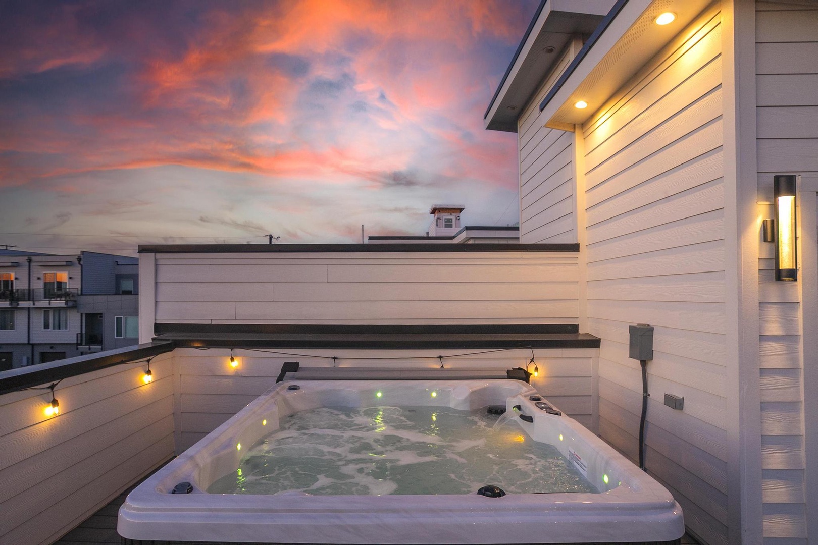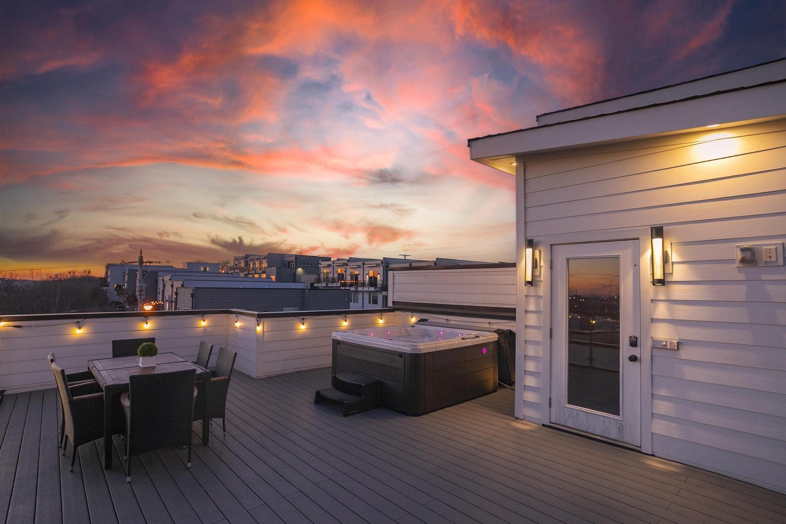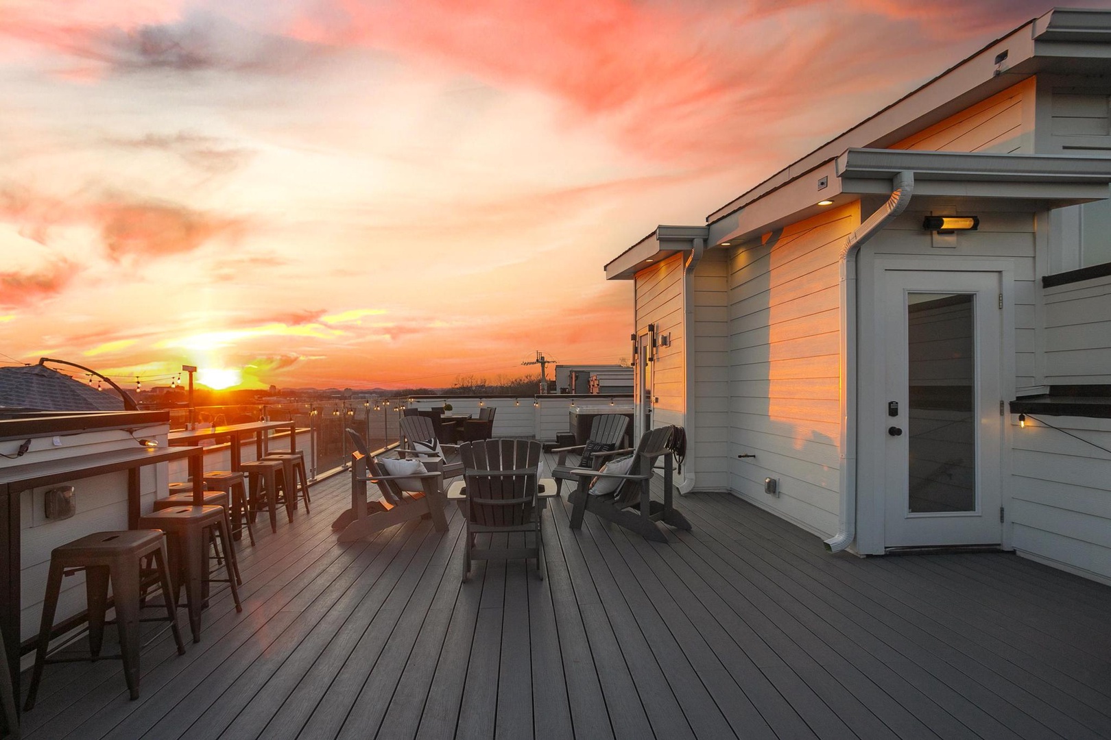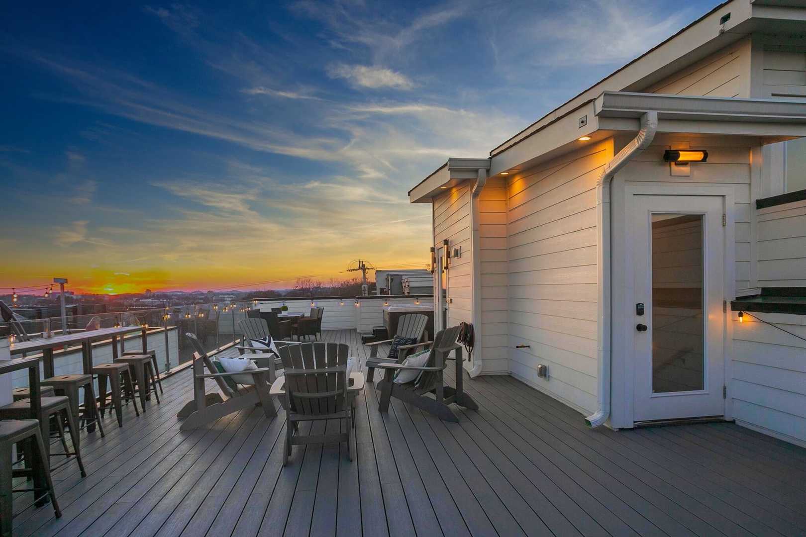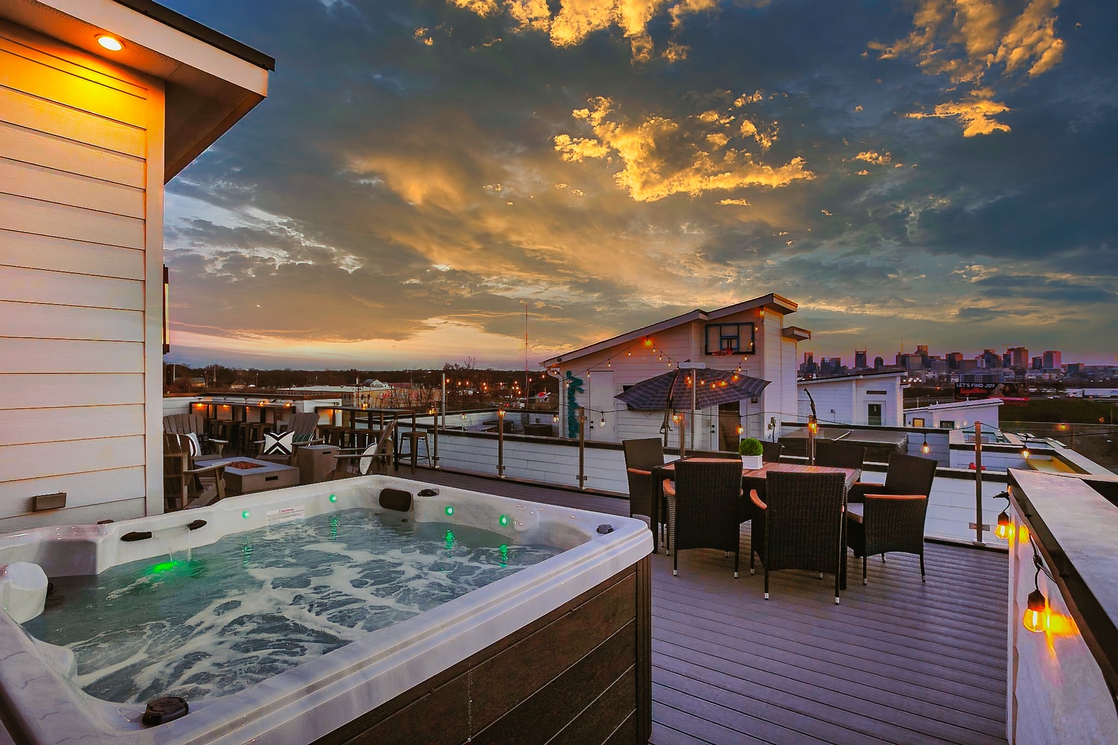 • Massive rooftop deck with city views, hot tub, fire pit – the perfect entertainment spot