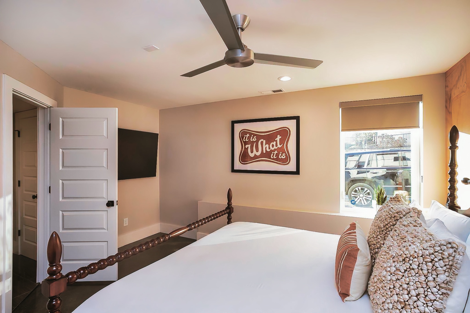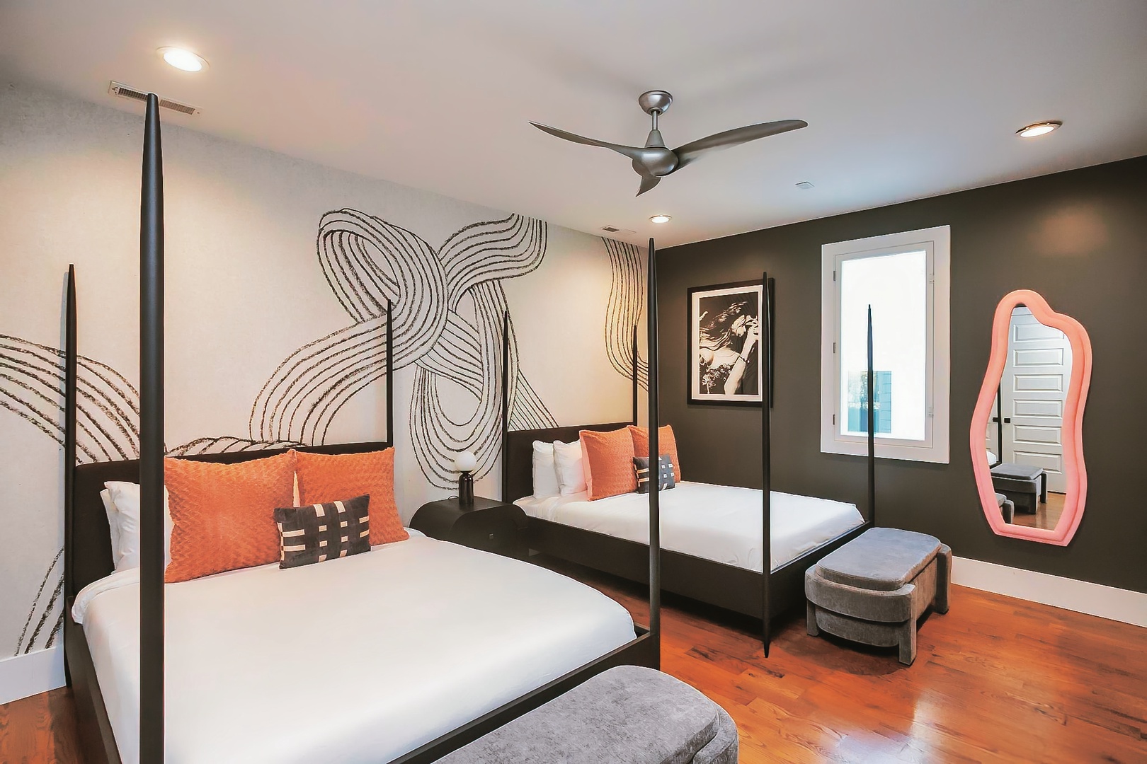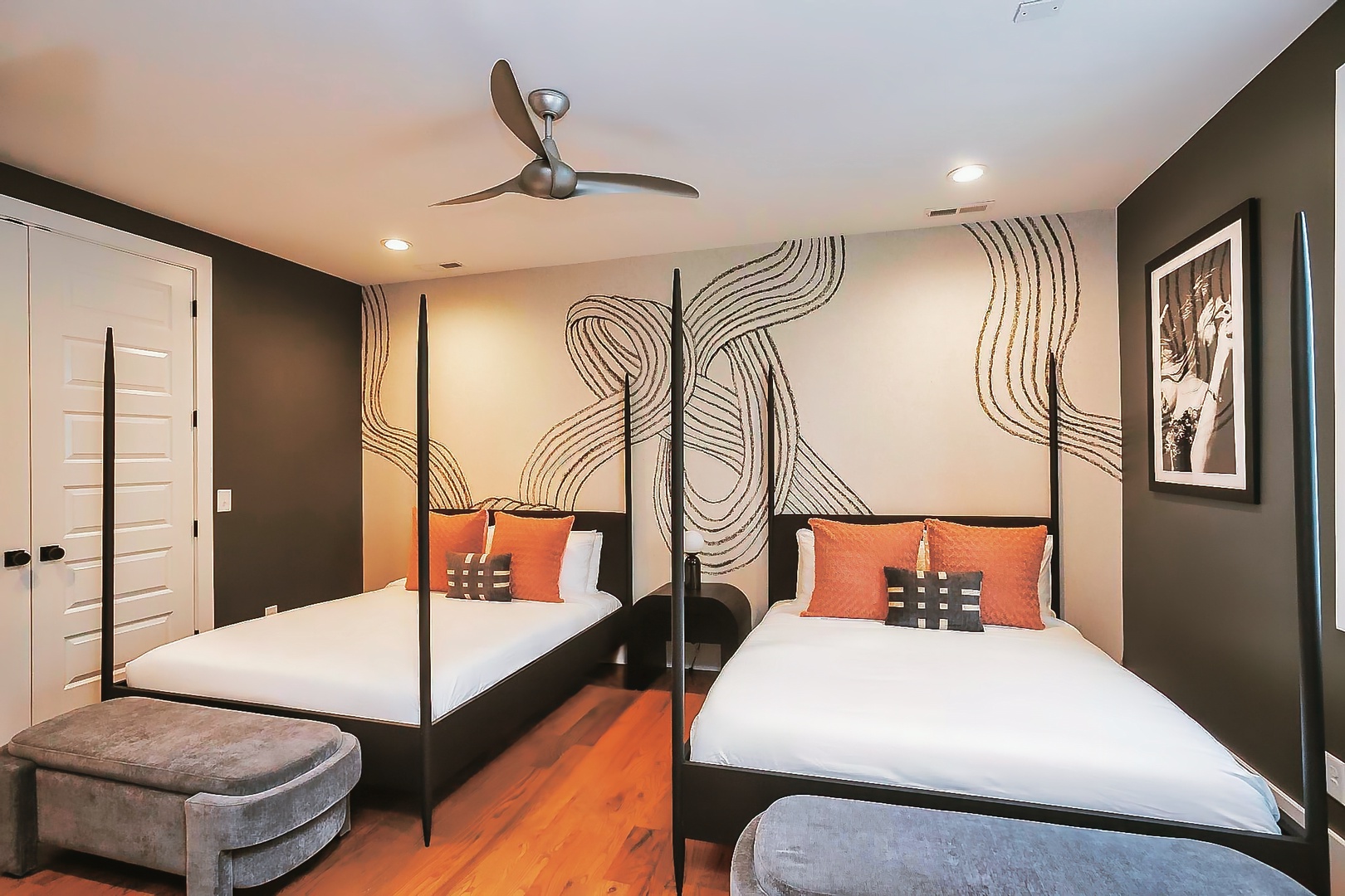 Cityscape Sanctuary boasts four thoughtfully appointed bedrooms, providing plush accommodations for a restful night's sleep after exploring all that Nashville has to offer. Each room exudes a unique charm, offering a blend of style and comfort for a rejuvenating stay.