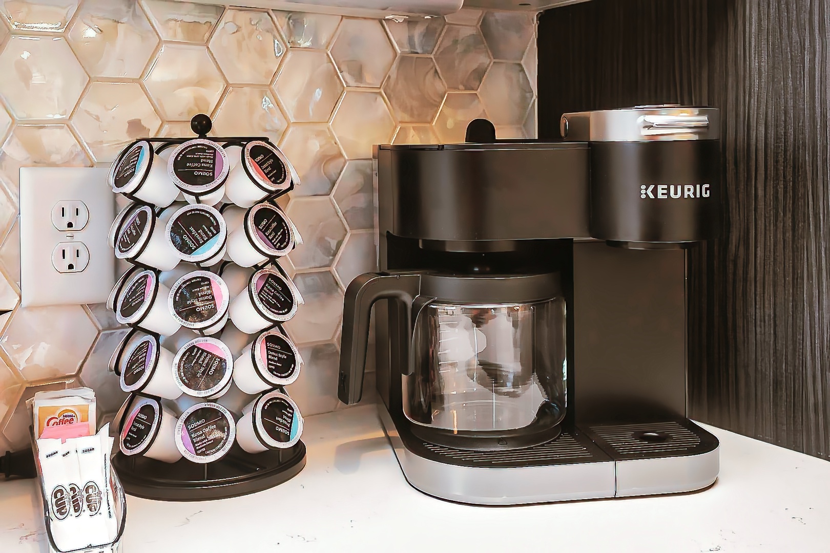 Keurig coffee machine with complimentary coffee pods