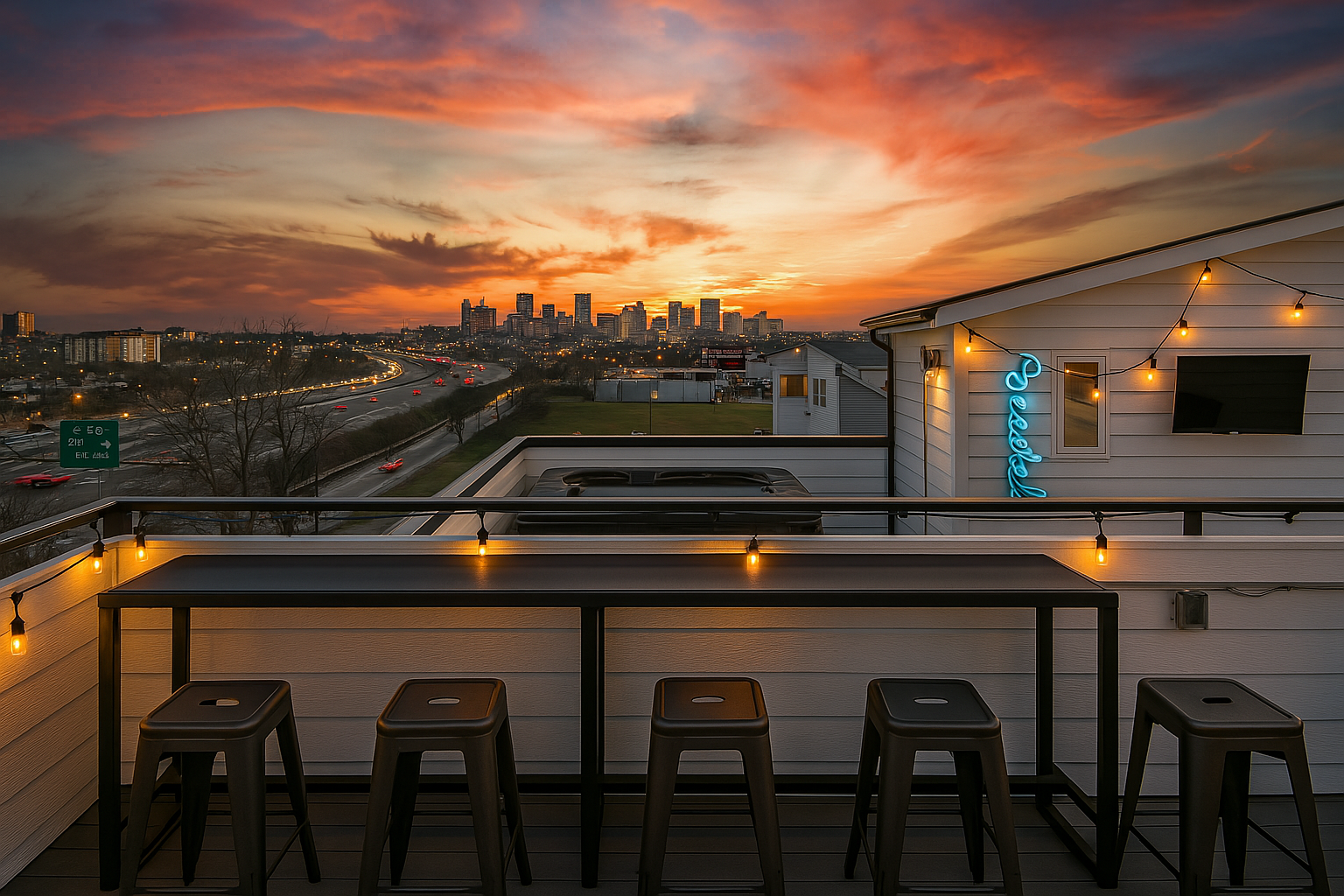 Sip cocktails with city vibes, relax in the rooftop hot tub, and explore all that the urban landscape of Nashville has to offer. Conveniently located between the best attractions, music venues, and nightlife, Cityscape Sanctuary is your launchpad for Music City’s adventures.