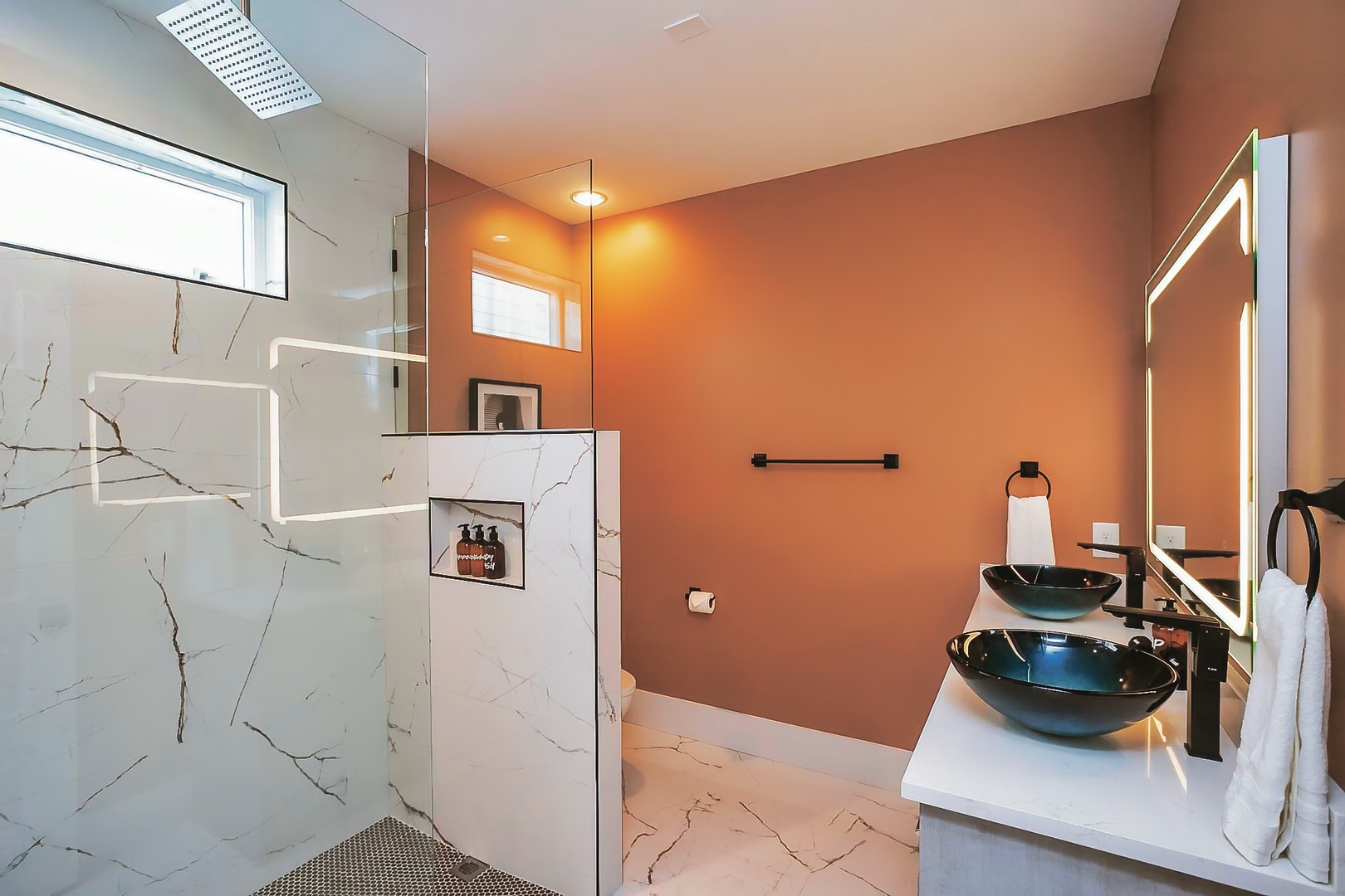 Indulge in relaxation with our 3.5 elegantly designed bathrooms, featuring modern amenities and luxurious touches. Whether you're preparing for a night out or unwinding after a day of exploring, our bathrooms offer a spa-like experience.