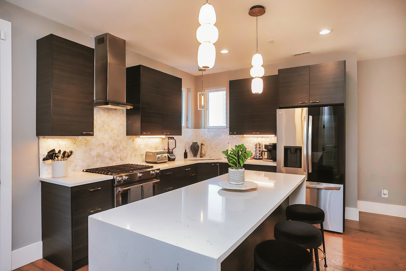 Cityscape Sanctuary offers a spacious floor plan, fully equipped kitchen, four bedrooms, 3.5 baths, and a massive rooftop deck providing ample room for your group of 12. Whether you're celebrating a special occasion, planning a family reunion, or embarking on a group adventure, Cityscape Sanctuary is designed to cater to the needs of large groups, ensuring everyone enjoys a memorable and luxurious stay.