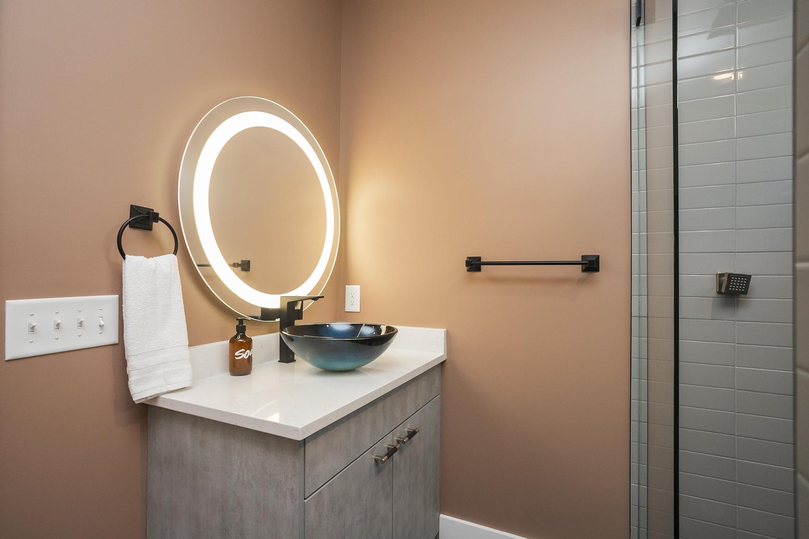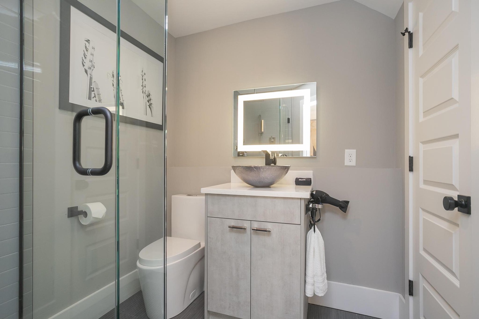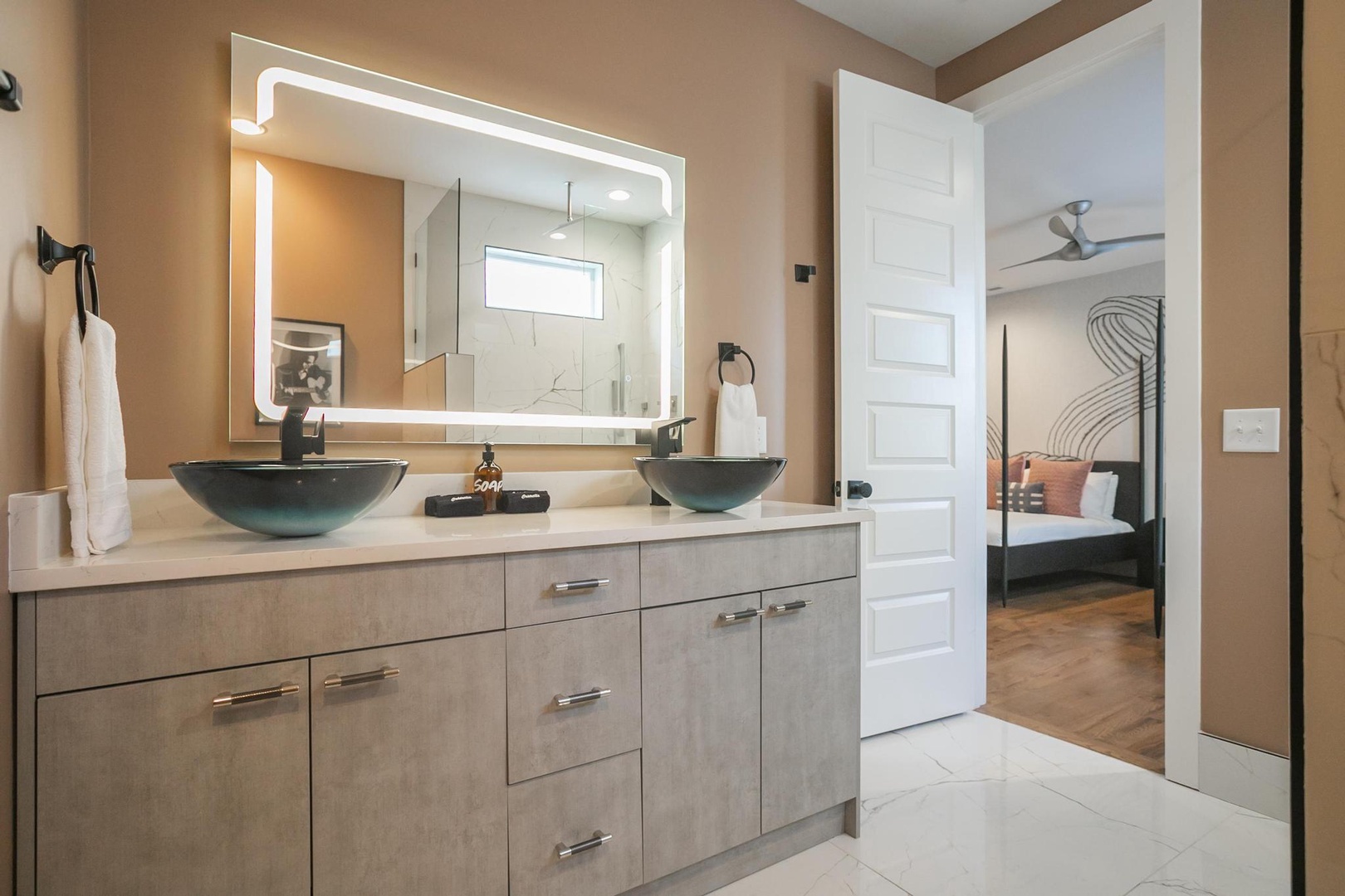 Each level of The Skyline Escape is equipped with beautifully designed bathrooms. Whether you're unwinding in the hot tub on the rooftop or prepping for a night out, the bathrooms provide the perfect touch of luxury and style.
