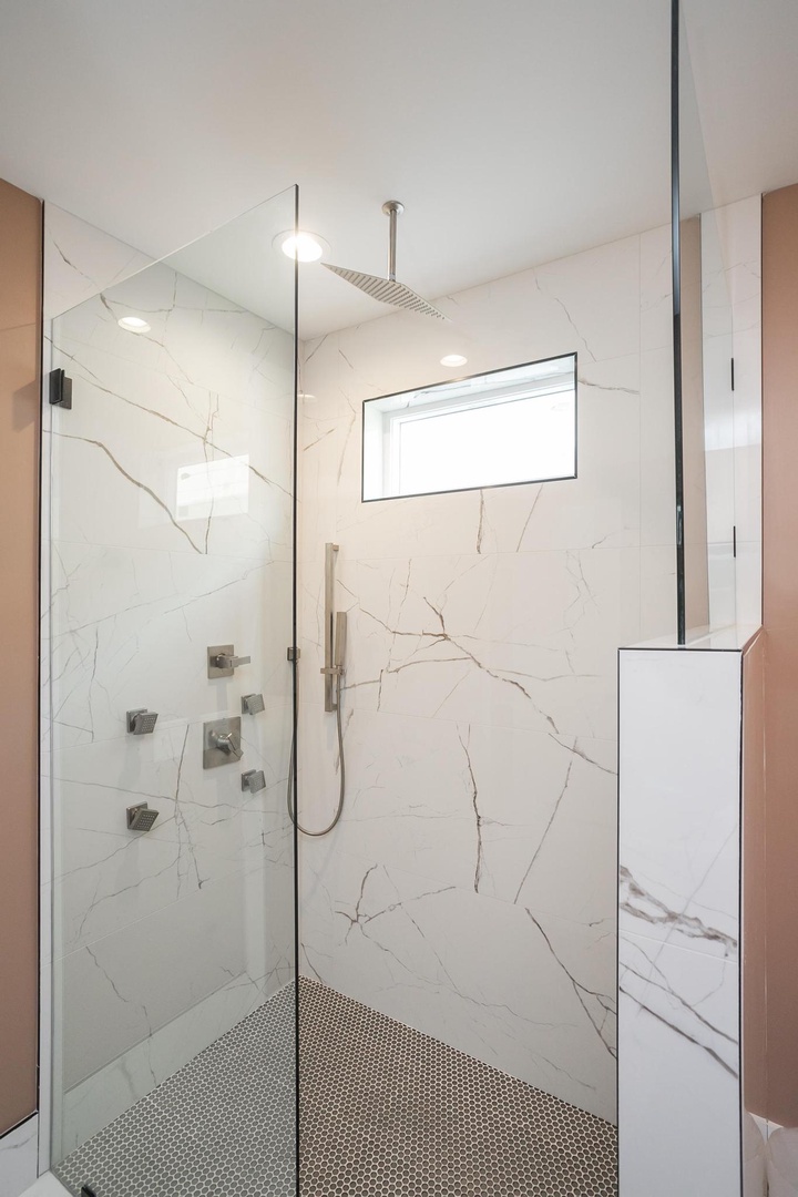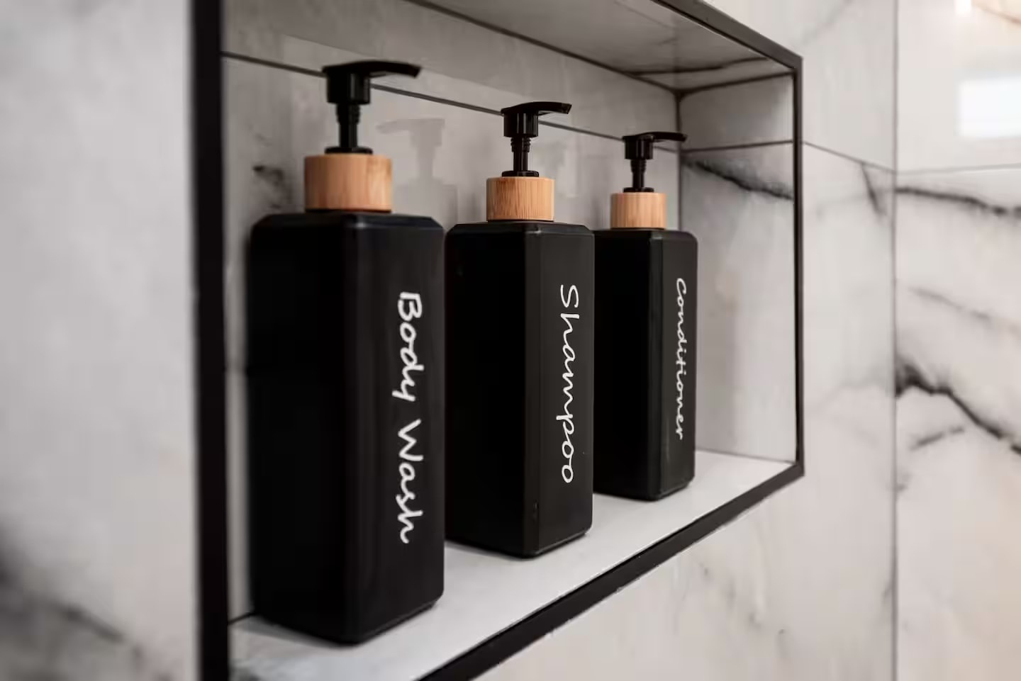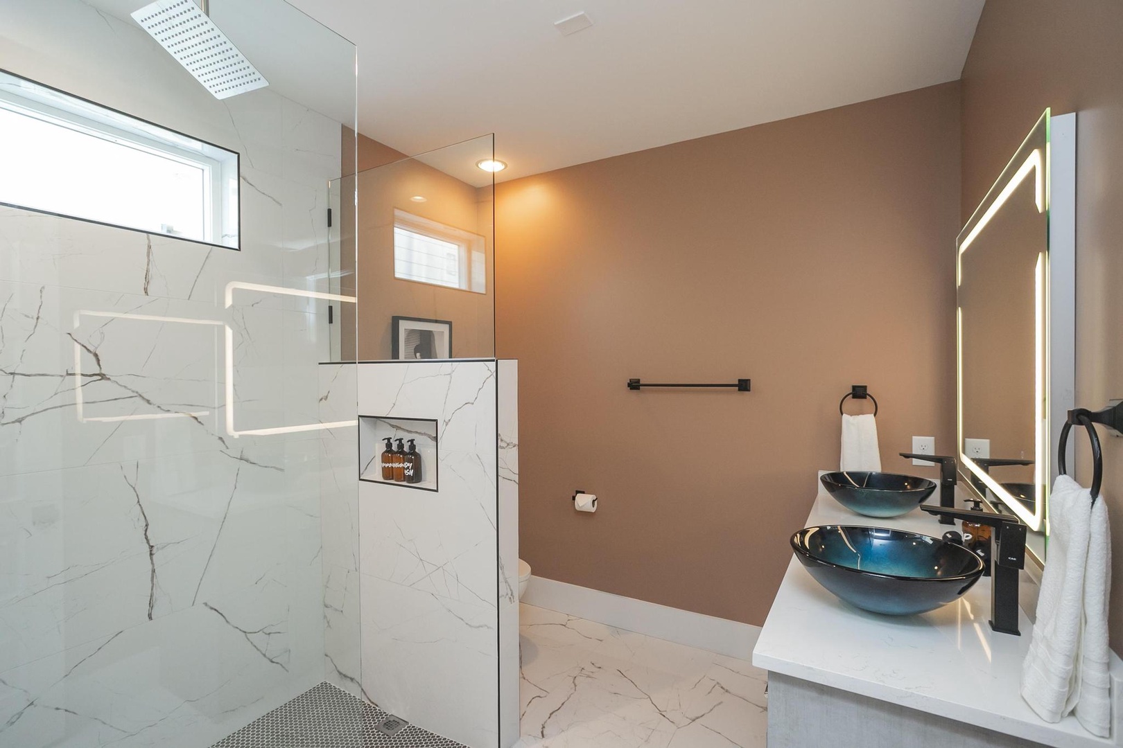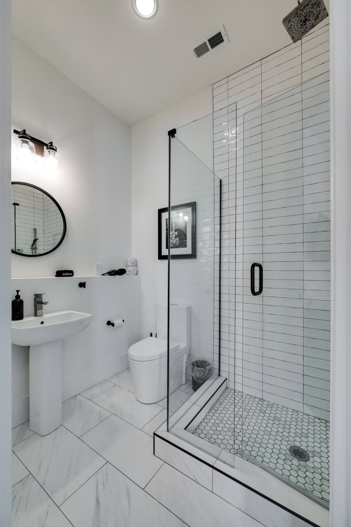 Each level of The Skyline Escape is equipped with beautifully designed bathrooms. Whether you're unwinding in the hot tub on the rooftop or prepping for a night out, the bathrooms provide the perfect touch of luxury and style.