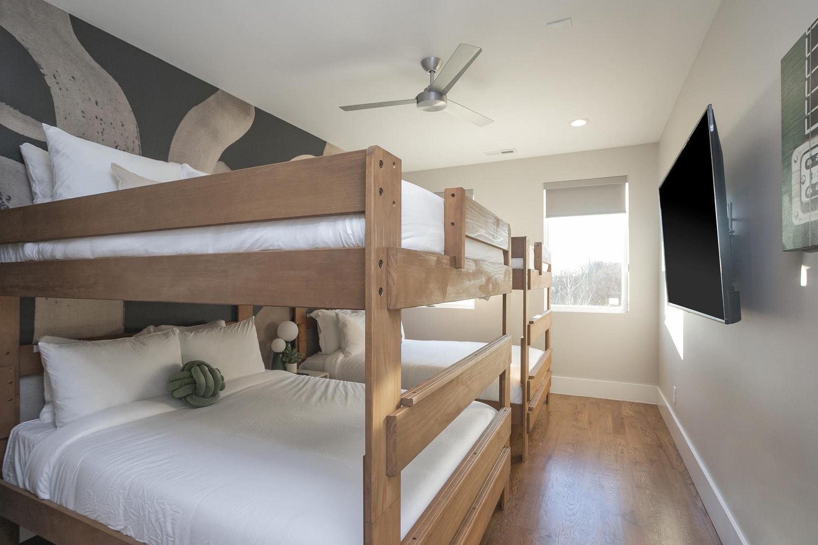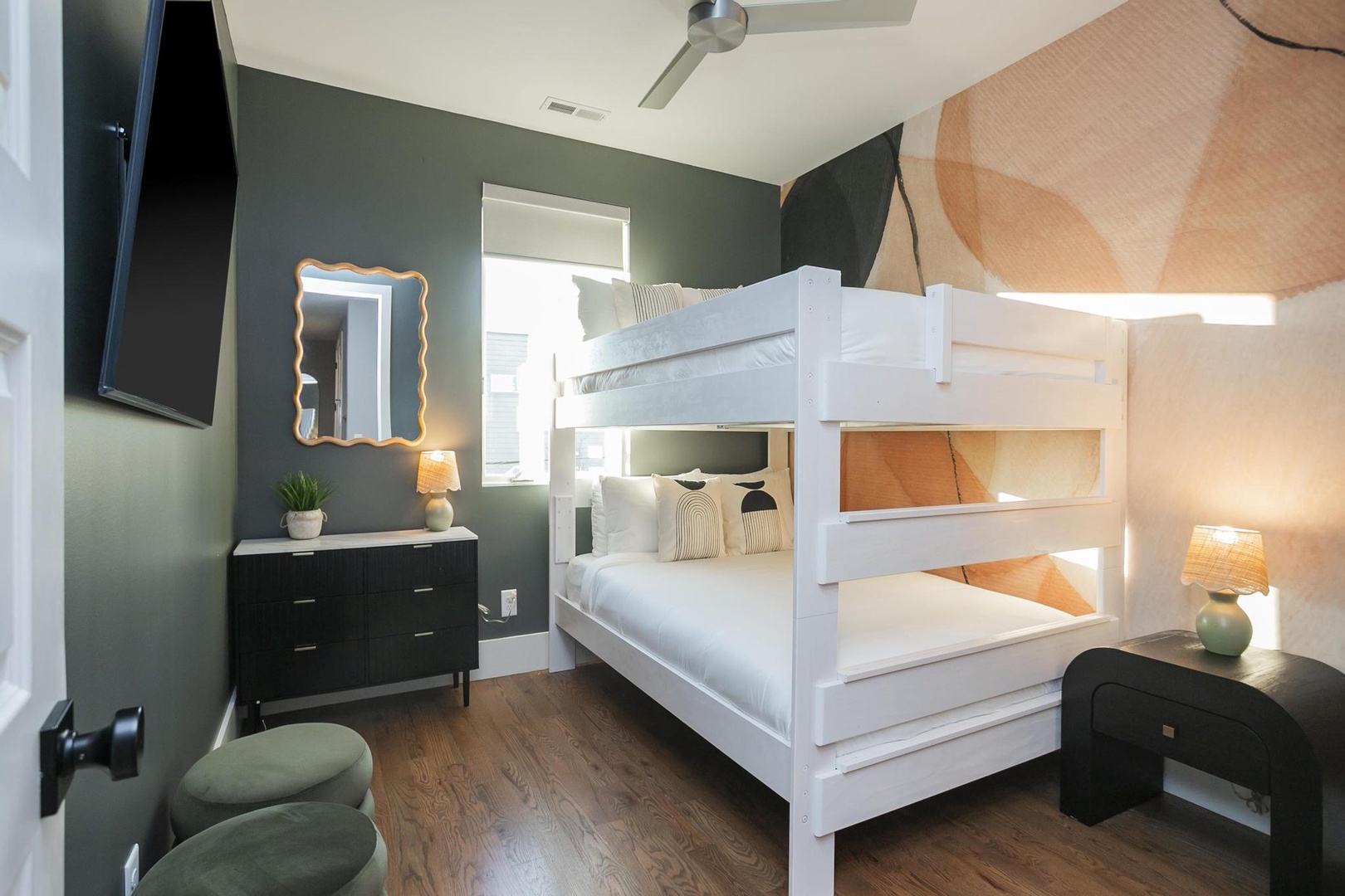 • Bedroom 3: 1 Full Queen Over Queen Bunk Bed with shared bath (2 total beds)
