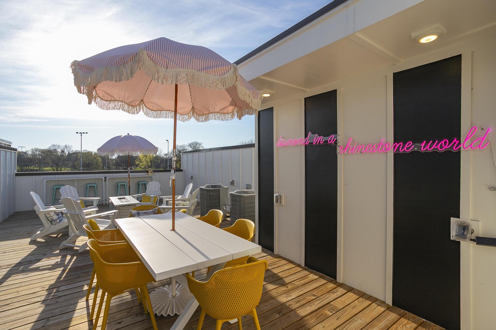 Entertainment awaits both inside and out! Enjoy park views from your windows or venture across to the nearby park. Ascend to the Dolly-themed rooftop, where a fire pit, BBQ, bar, and dining area await under colorful umbrellas. It's the ultimate spot for memorable gatherings and lively parties. Conveniently located between the best attractions, music venues, and nightlife, Dolly's Dream House is your launchpad for Music City's adventures.
