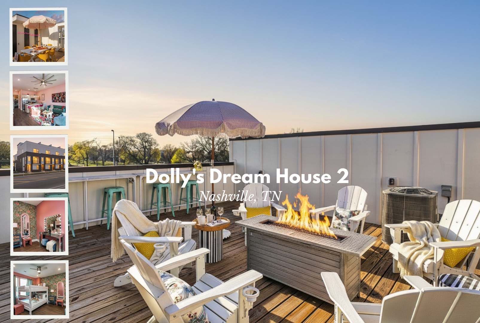 Entertainment awaits both inside and out! Enjoy park views from your windows or venture across to the nearby park. Ascend to the Dolly-themed rooftop, where a fire pit, BBQ, bar, and dining area await under colorful umbrellas. It's the ultimate spot for memorable gatherings and lively parties. Conveniently located between the best attractions, music venues, and nightlife, Dolly's Dream House is your launchpad for Music City's adventures.