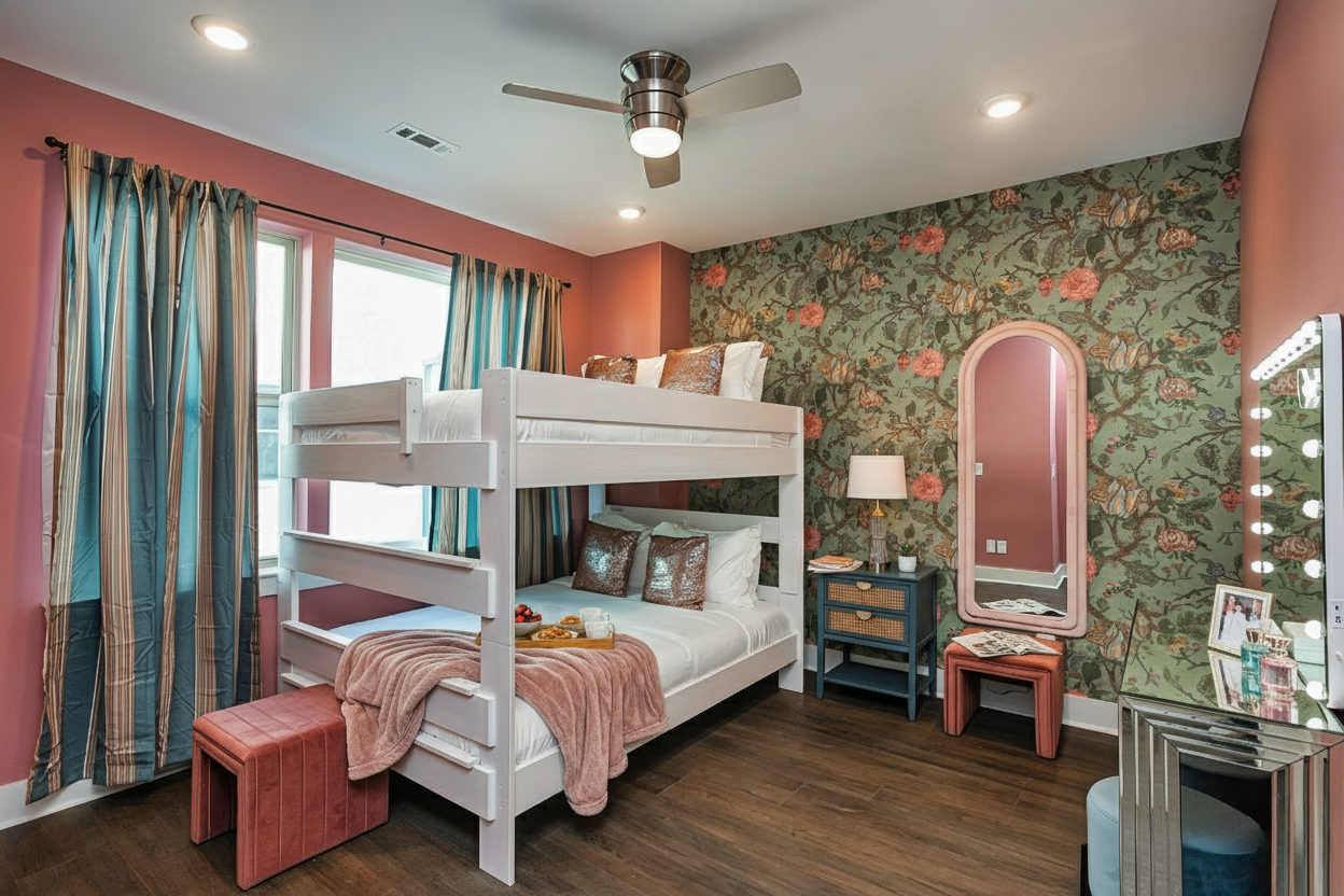 Dolly's Dream House boasts four thoughtfully appointed bedrooms, each named after a Dolly Parton hit, providing plush accommodations for a restful night's sleep after exploring all that Nashville has to offer. Each room exudes a unique charm, offering a blend of style and comfort for a rejuvenating stay.