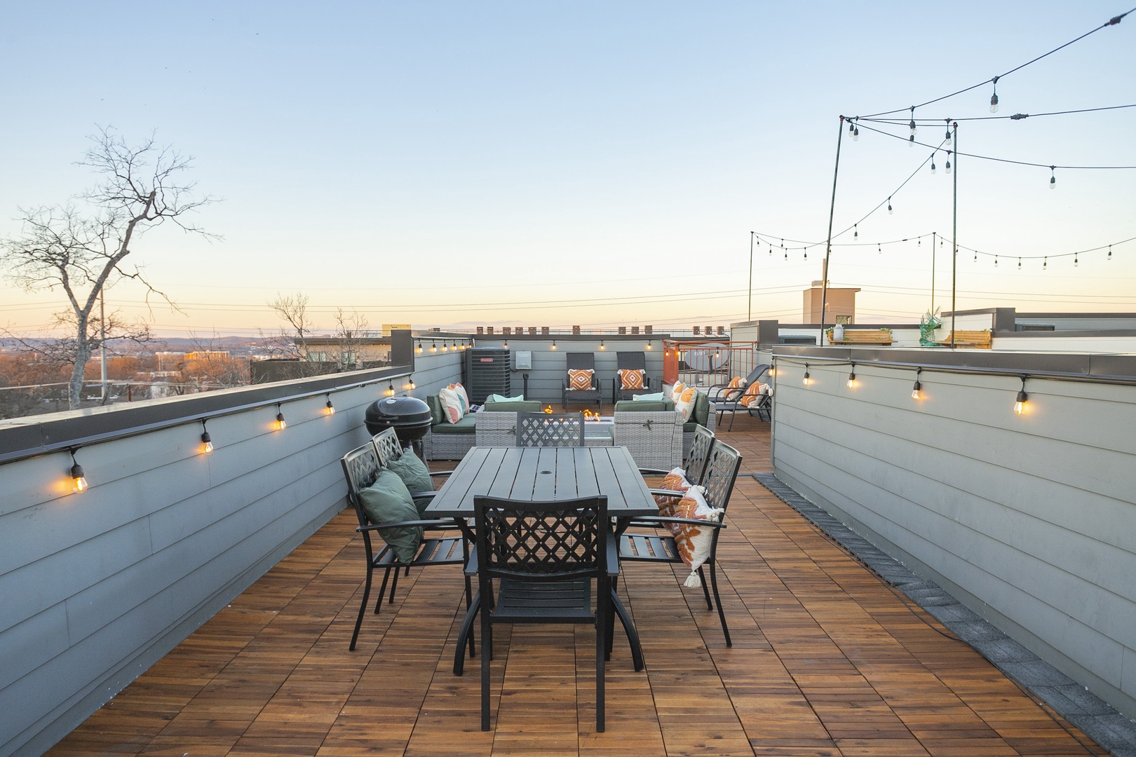 Take your culinary creation up to the private rooftop and enjoy breathtaking views while you dine al fresco 🍷 at the outdoor table with seating for 12.