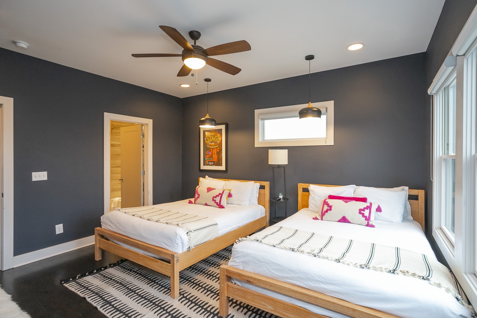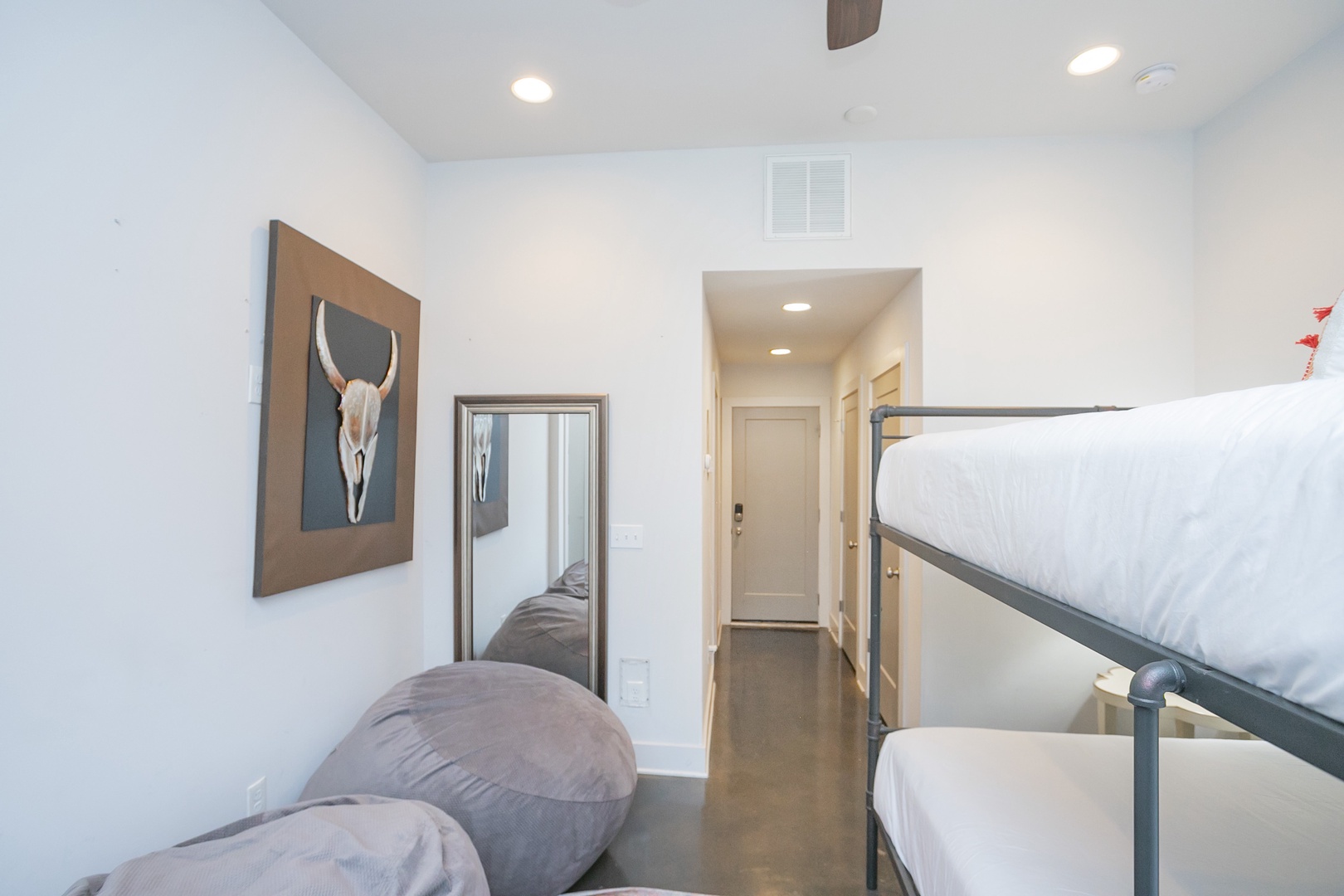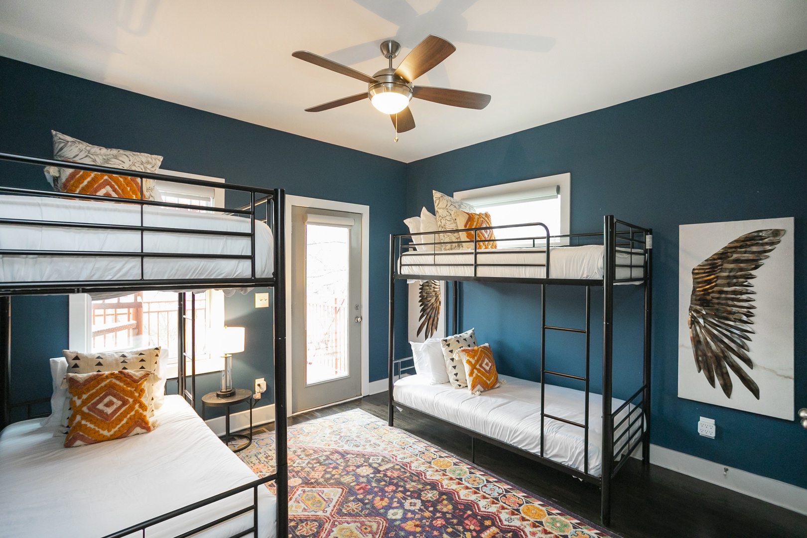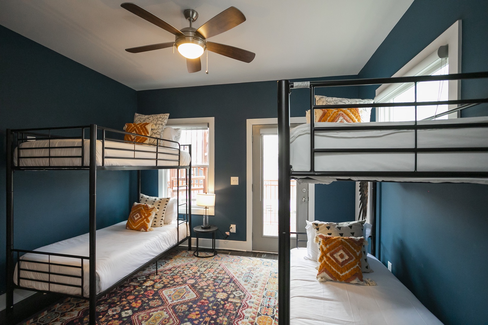 Cloud-like mattresses and soft linens await in any of the 3 bedrooms, ushering everyone to sleep with ease. Two bedrooms feature 2 queen beds and ensuite bathrooms. The third bedroom features 4 twin beds and an awesome spiral staircase off the balcony leading to the private rooftop. There's also a queen airbed and a full size CordaRoy (as seen on Shark Tank).