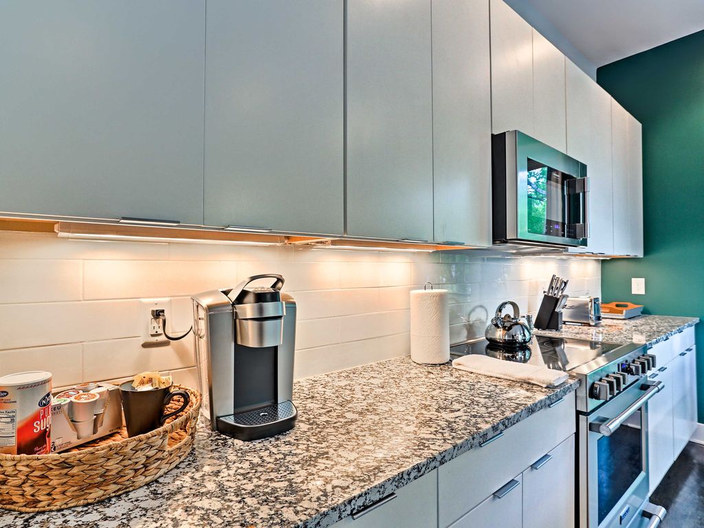 In a Stay Minty home, you’ll always find our bathrooms stocked with everything you need to get squeaky clean including shampoo, conditioner, and body wash. Our kitchens have all the essentials needed to prepare your favorite meal. Get your caffeine fix each morning with Keurig coffee pods included with every stay. We’ve even got your TV entertainment covered with hundreds of streaming options to choose from.