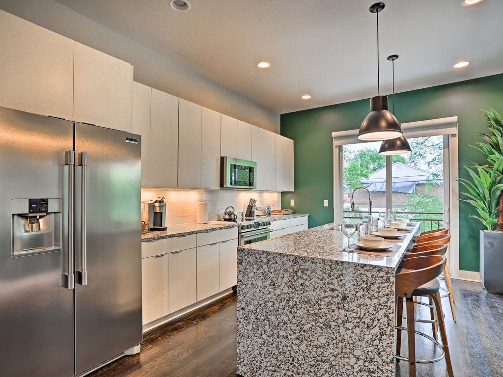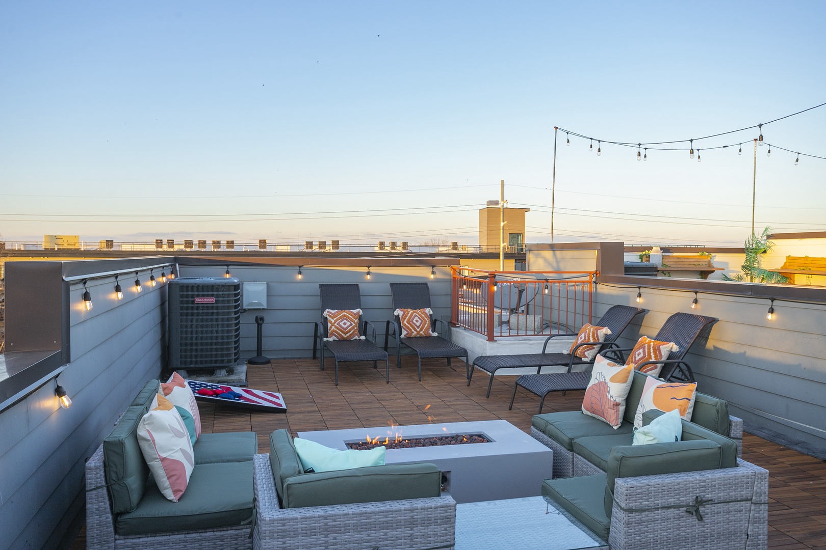 Enter your new home-away-from-home and marvel at the gorgeous hardwood floors, top-notch furnishings, and hip decor! Head to the roof to watch the sunset over the city 🌇 as you dine al fresco 🍽️ at the outdoor table with seating for 12. You're going to love the open and airy floor plan – it's perfect for your group!
