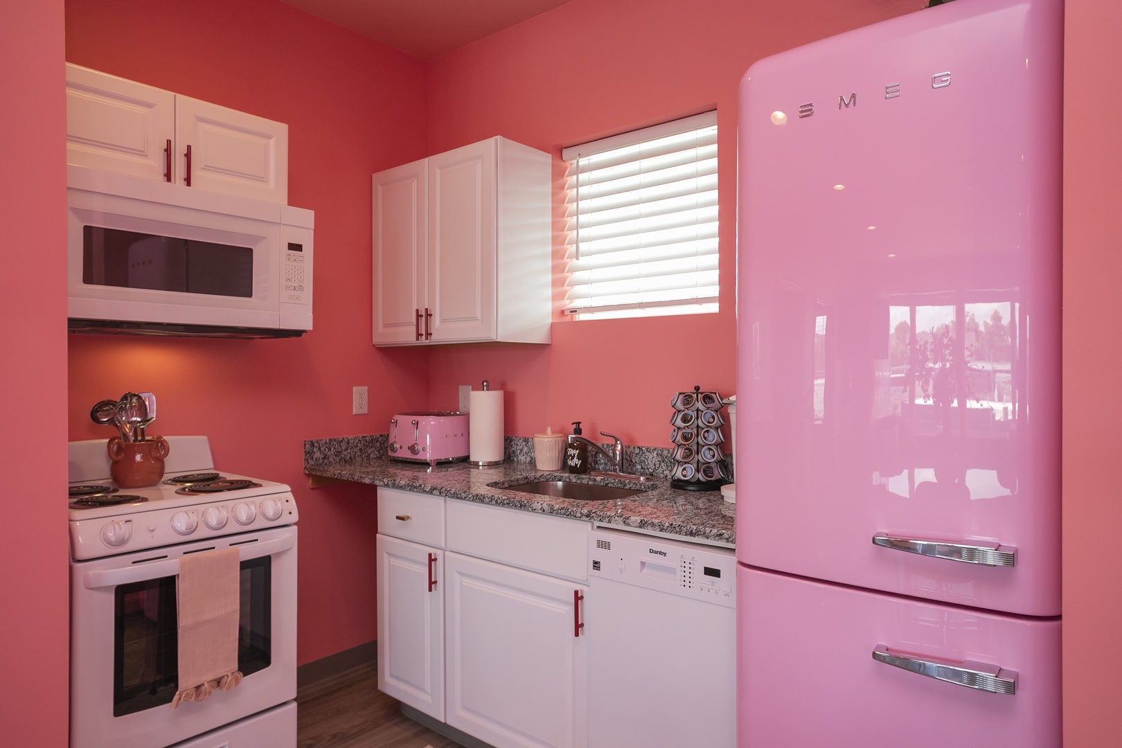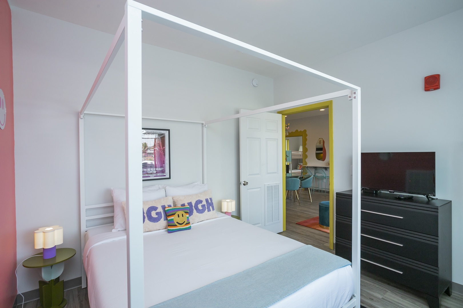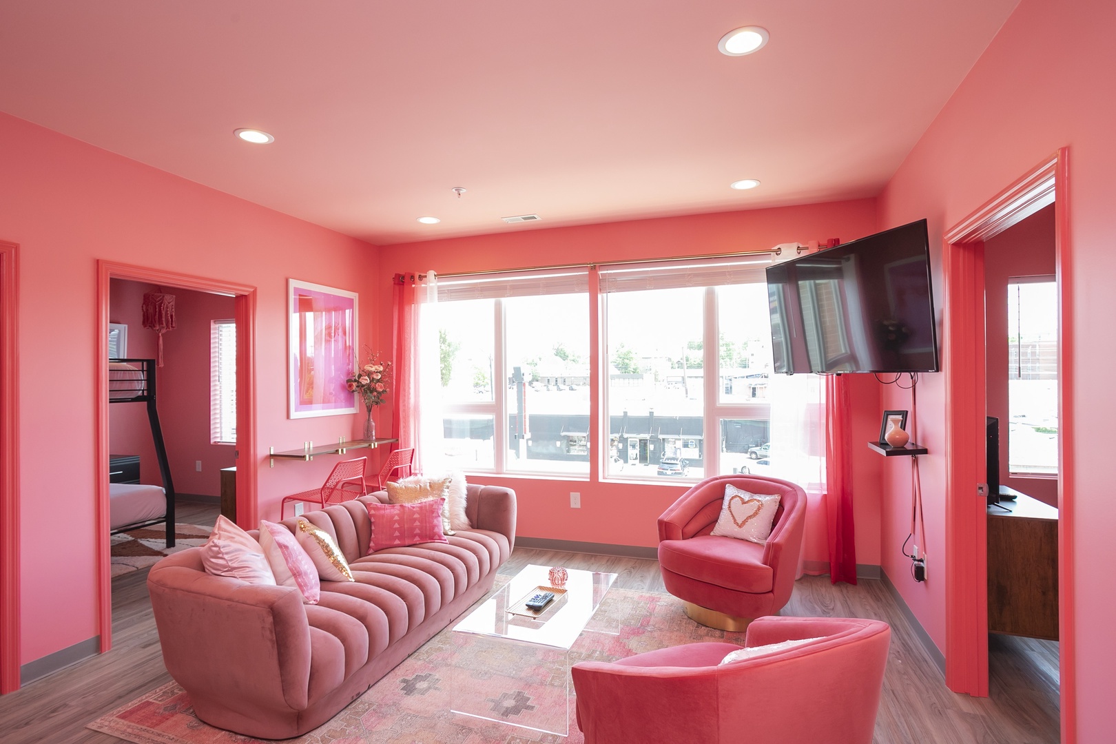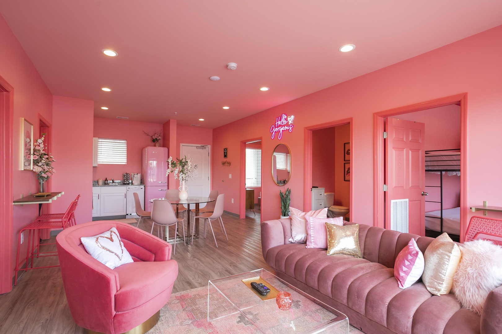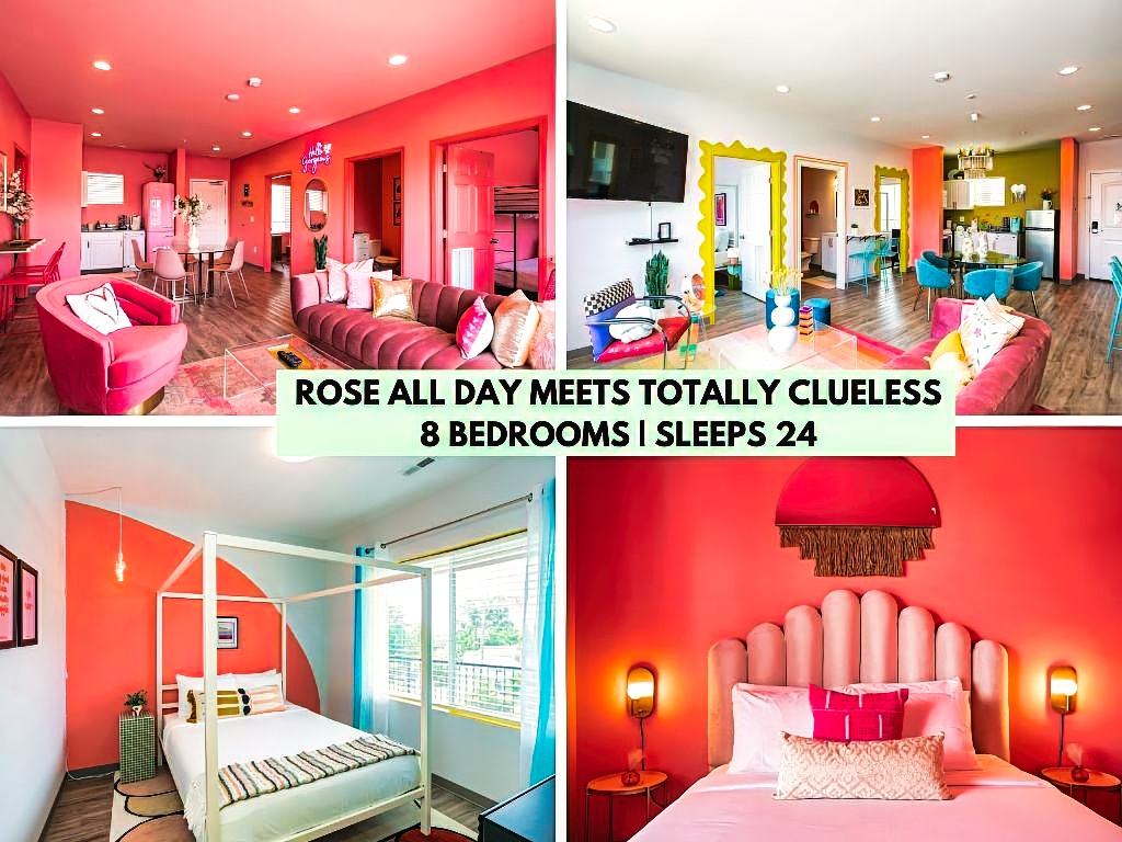 👑 The first condo is themed after the 90’s classic “CLUELESS”. Your friends who are 90’s Queens and Beverly Hills Princesses at heart will totally call dibs on a bed here to come hang out with Cher, Dionne, Tai and the rest of the gang. The second condo is the place to rosé all day, to think pink, to live la vie en rose. Everything in this spot is a gorgeous shade of pink. Our pink-thinking icon, Elle Woods, would approve. Like we said at the top, it’s giving the perfect girls trip.