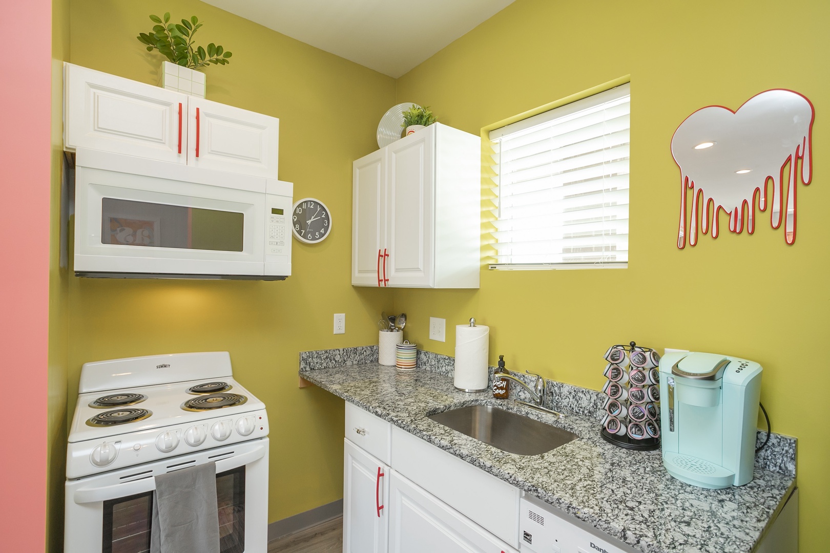 In a Stay Minty home, you’ll always find our bathrooms stocked with everything you need to get squeaky clean including shampoo, conditioner, and body wash. Our kitchens have all the essentials needed to prepare your favorite meal. Get your caffeine fix each morning with Keurig coffee pods included with every stay. We’ve even got your TV entertainment covered with hundreds of streaming options to choose from.