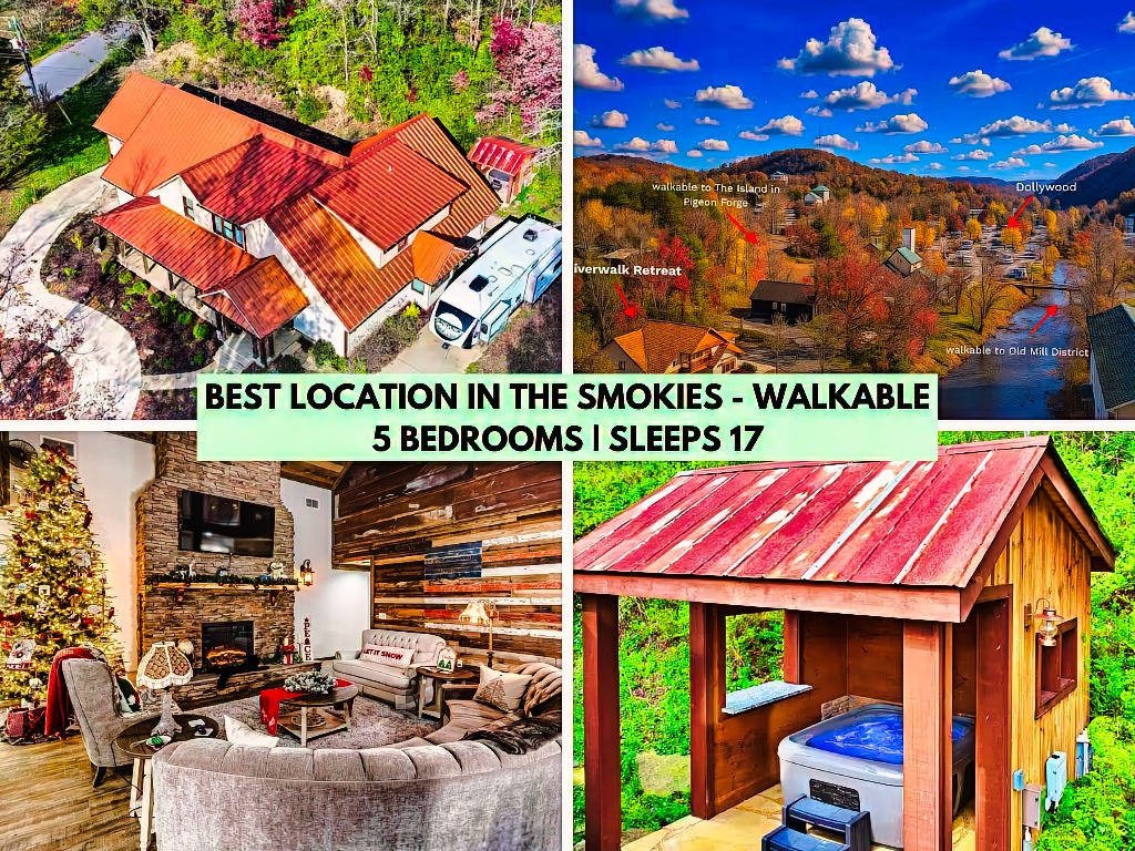Your one-of-a-kind Smoky Mountain stay with private river access, an outdoor fire pit, hot tub, RV hookup, pool table, air hockey and walkability to everything downtown Pigeon Forge has to offer. This 5-bedroom, 4-bathroom home sleeps up to 16 guests and is the perfect blend of outdoor adventure and downtown convenience.