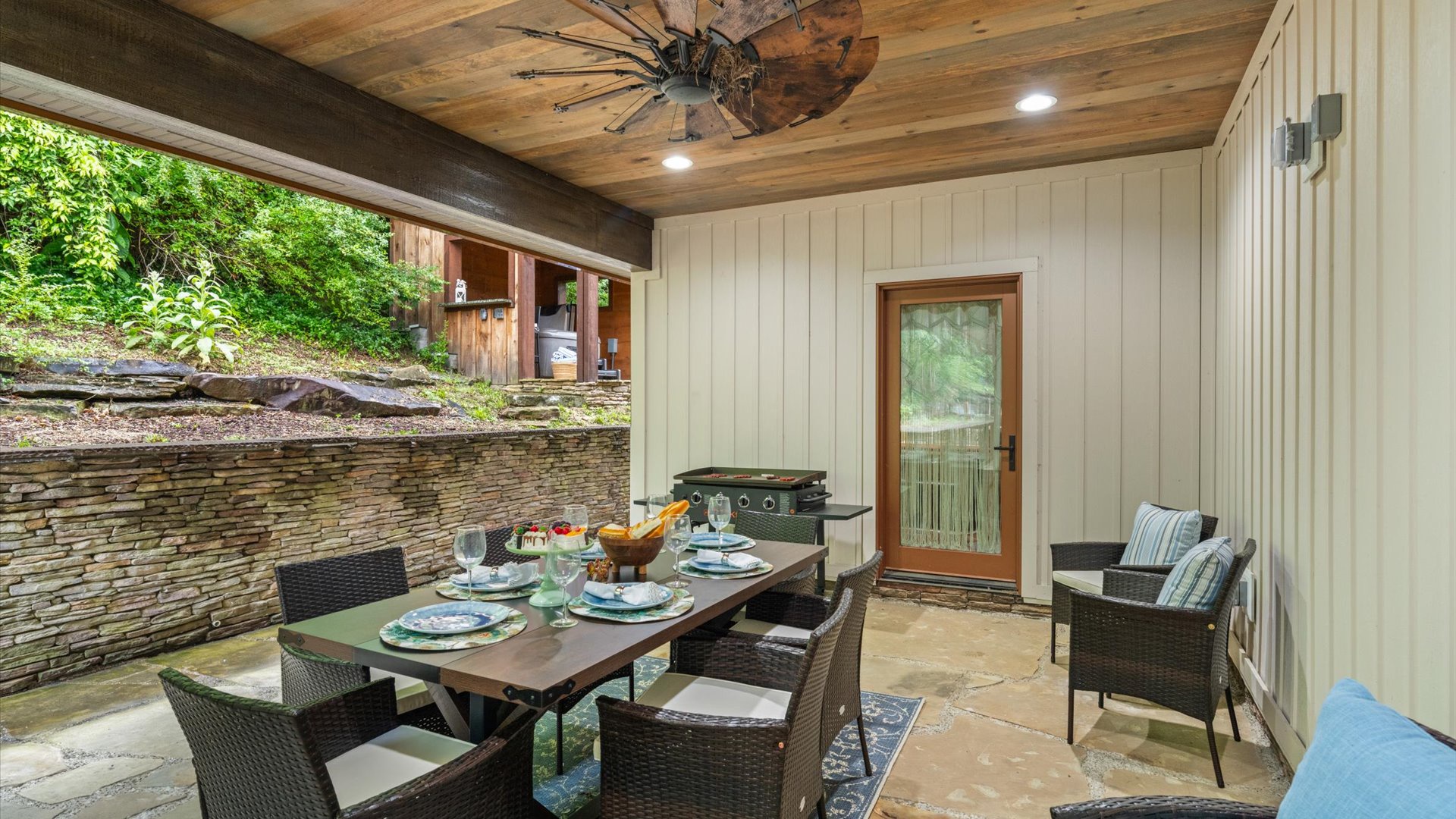 The Little Pigeon River flows just outside your back door, creating a dreamy backdrop for tubing, sipping morning coffee, or cozying up by the fire pit under string lights. Float, fish, or simply relax as the river does its thing.