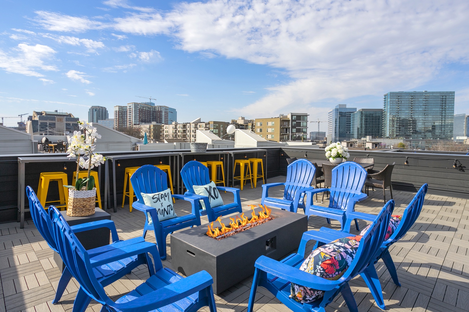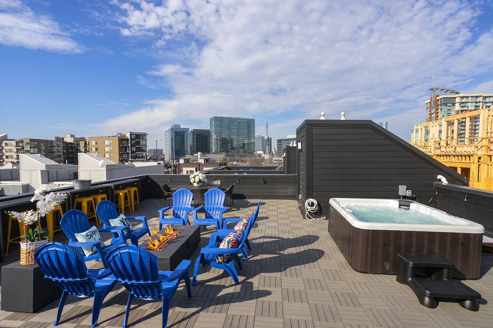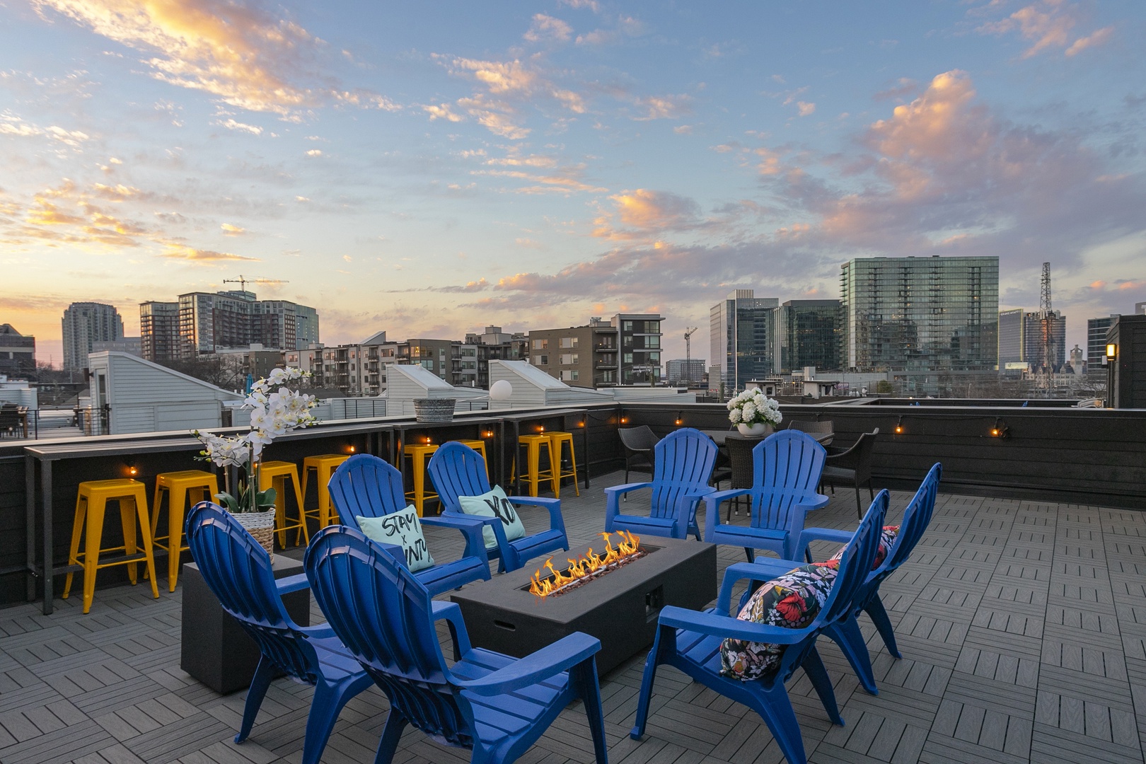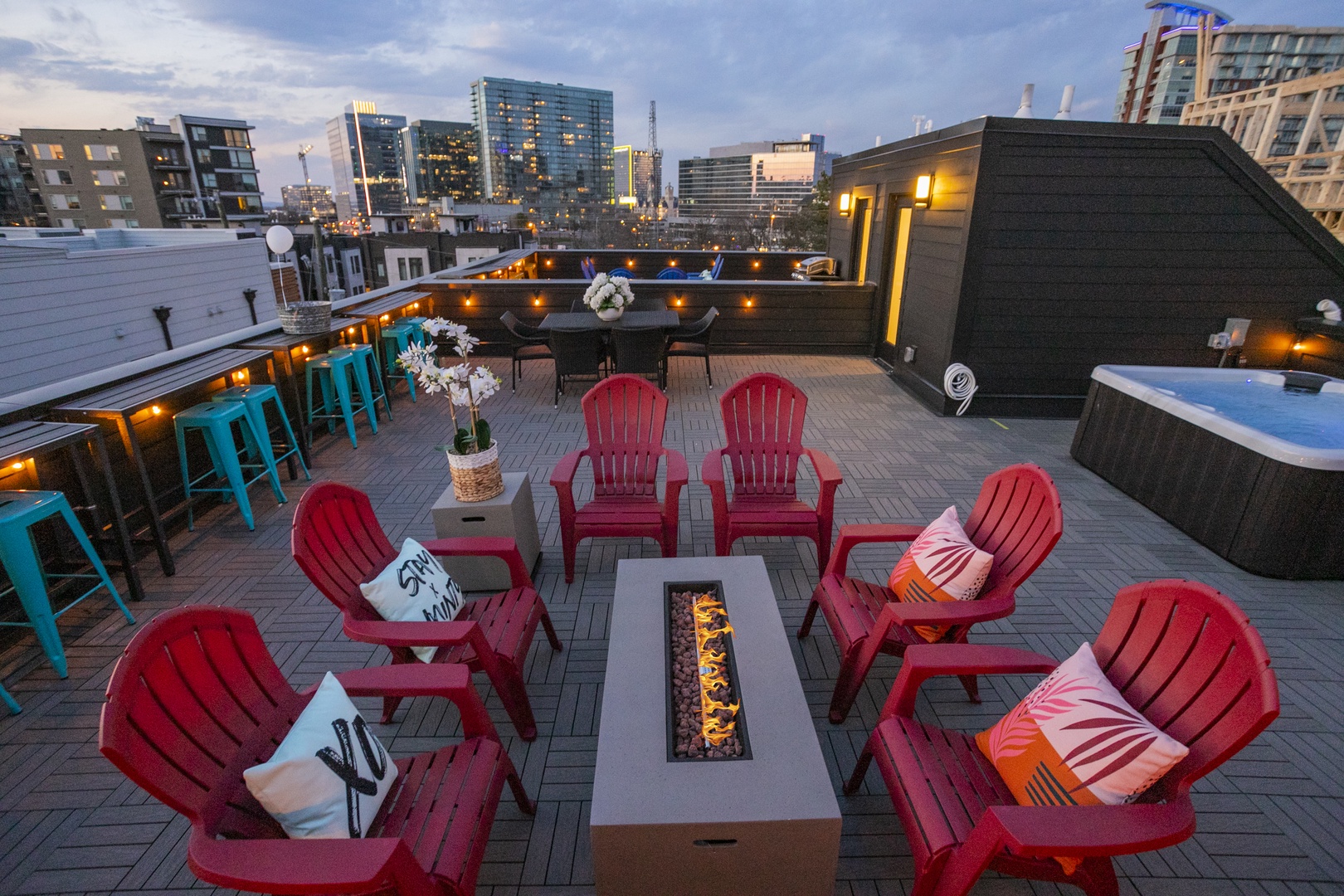 The rooftops are the reason this home is in such high demand. The star of the show is definitely the private hot tub on the rooftop with panoramic skyline views of Nashville. There's also a gas fire pit and grill as well as plenty of seating for everyone to relax and have a good time.