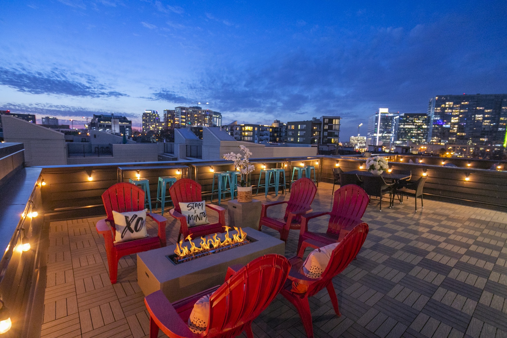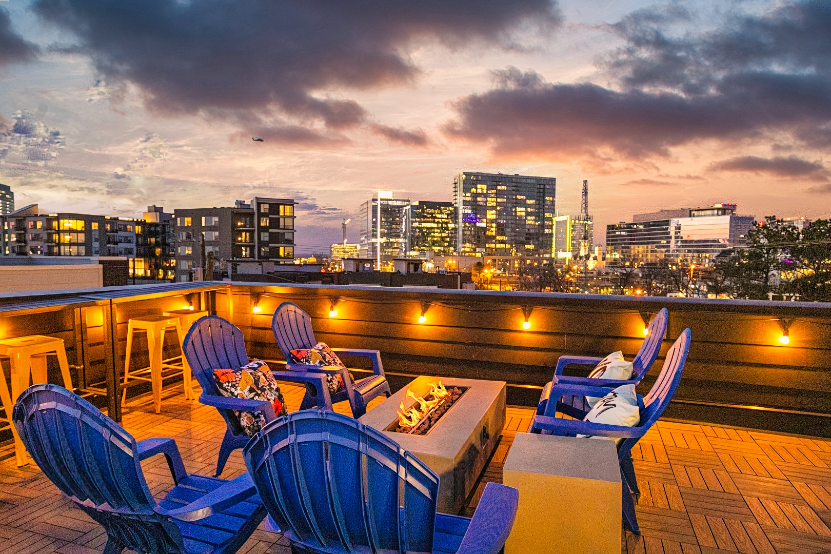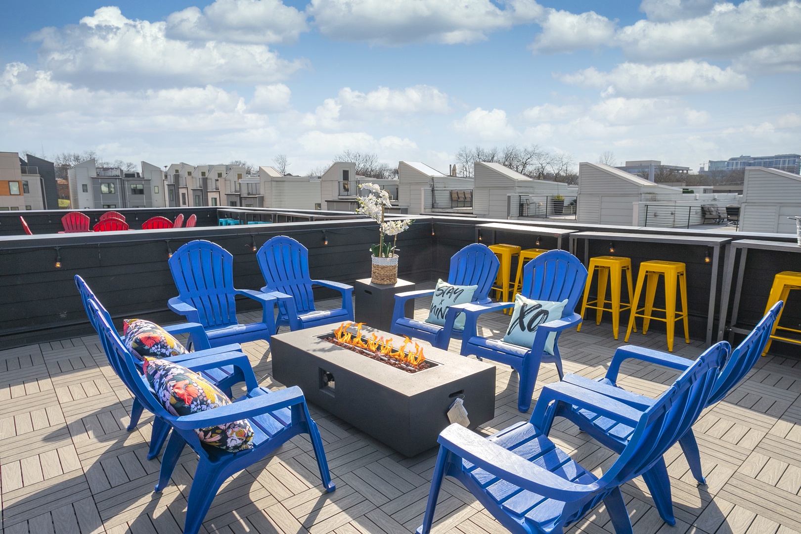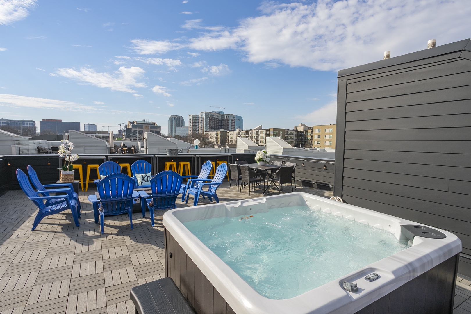 The rooftops are the reason this home is in such high demand. The star of the show is definitely the private hot tub on the rooftop with panoramic skyline views of Nashville. There's also a gas fire pit and grill as well as plenty of seating for everyone to relax and have a good time.