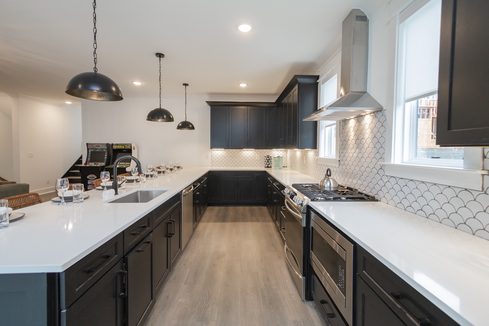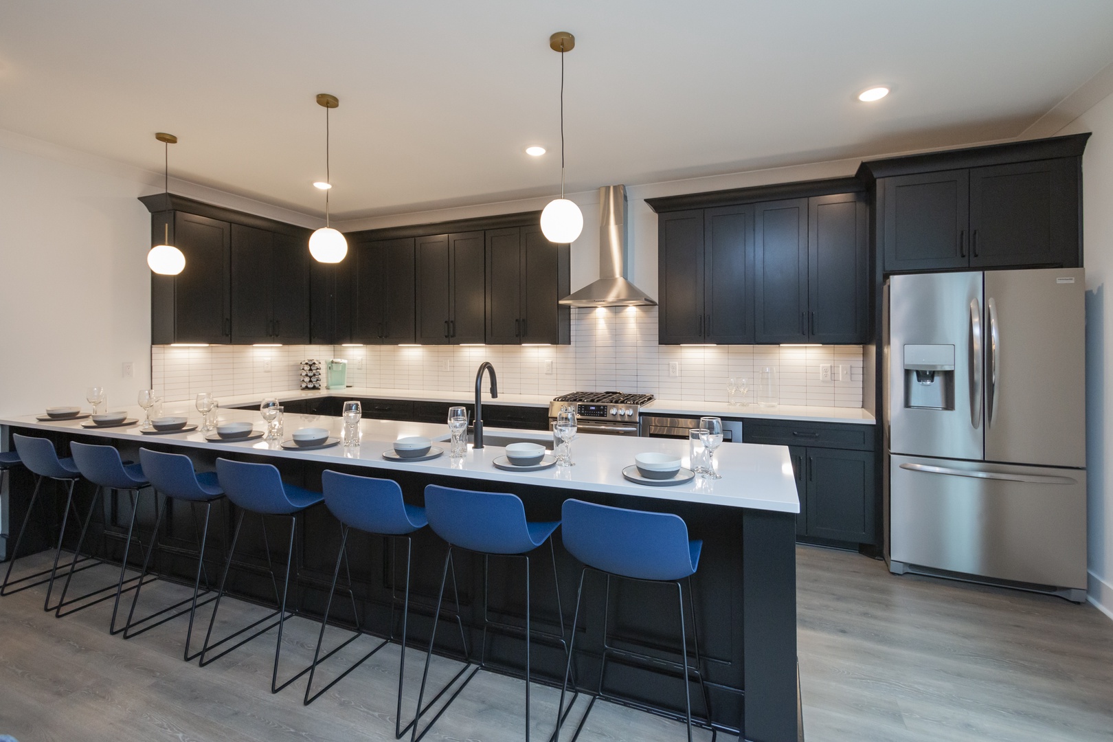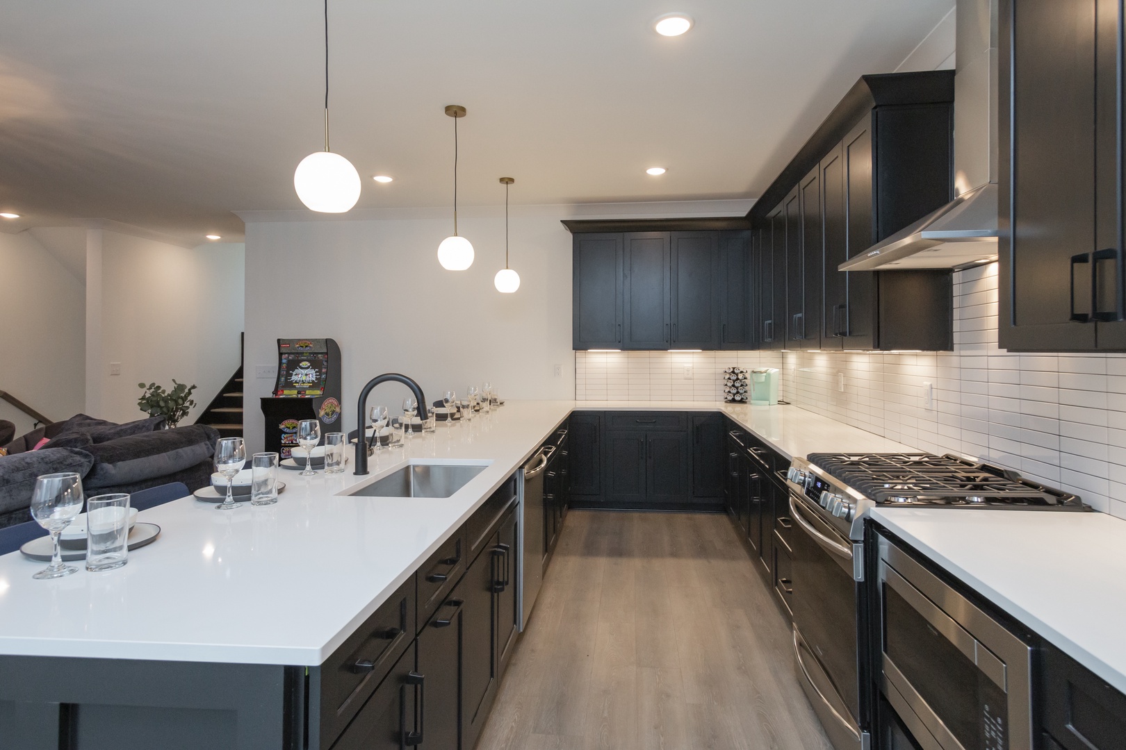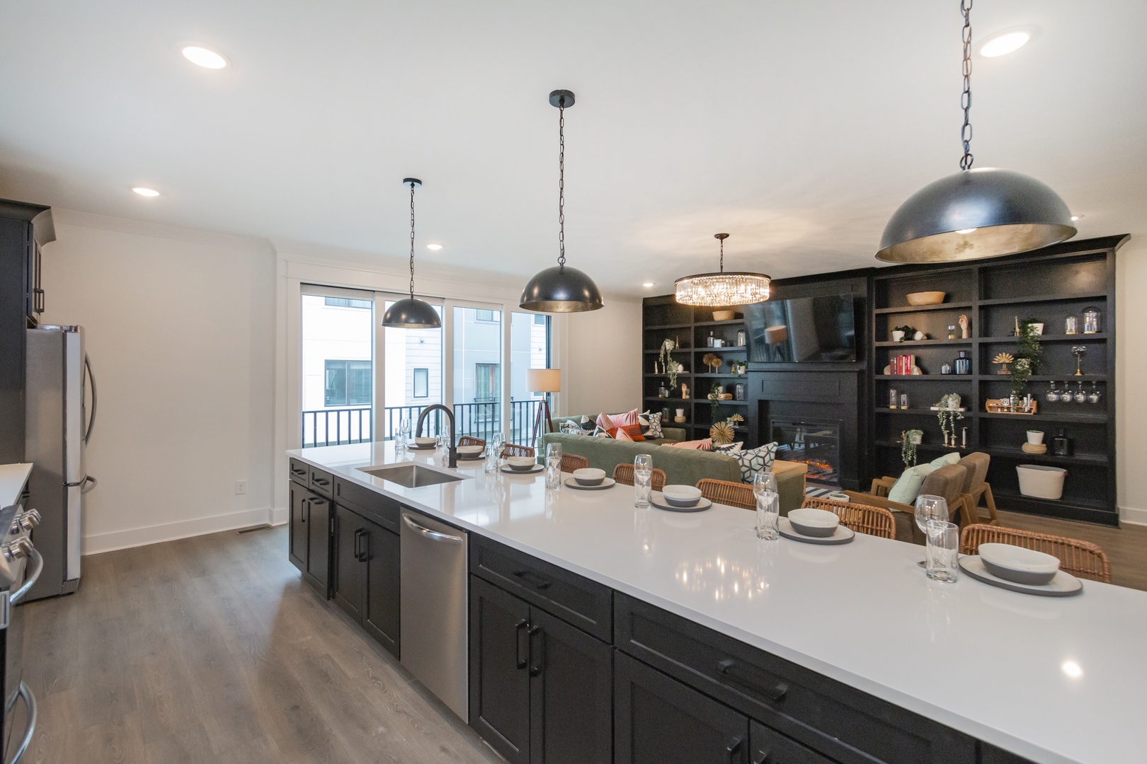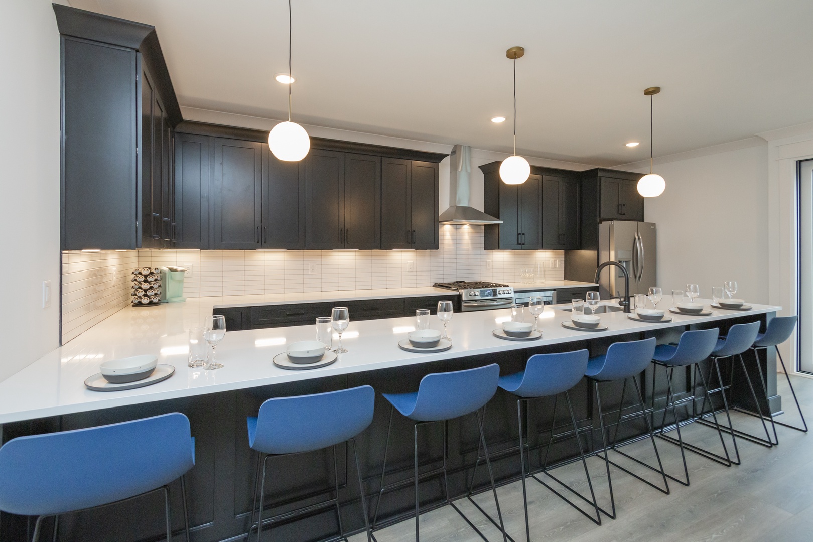 The home features a gorgeous kitchen that's wide open to the living space. The island is one of the longest we've seen in a house and is perfect for cooking 🍳, catching up with old friends 🧑🤝🧑 or even bringing out a deck of cards 🃏 for a friendly game of Spades.