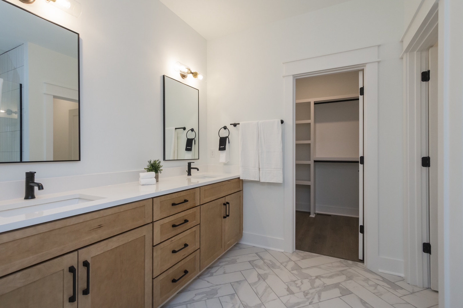 Most of the bathrooms have single or double vanities and glassed-in showers. 🚪 One of the bathrooms has a soaking tub 🛁 should you be so inclined to draw a bubble bath during your stay. We stock the bathrooms with plenty of bath 🛀 and hand towels, washcloths 🧼, cosmetic towels and floor mats 🧴 to give you something nice and fluffy to step on when getting out of the shower. You'll also find hair dryers 💨 in each bathroom along with plenty of spa-quality shampoo, conditioner, and body wash.